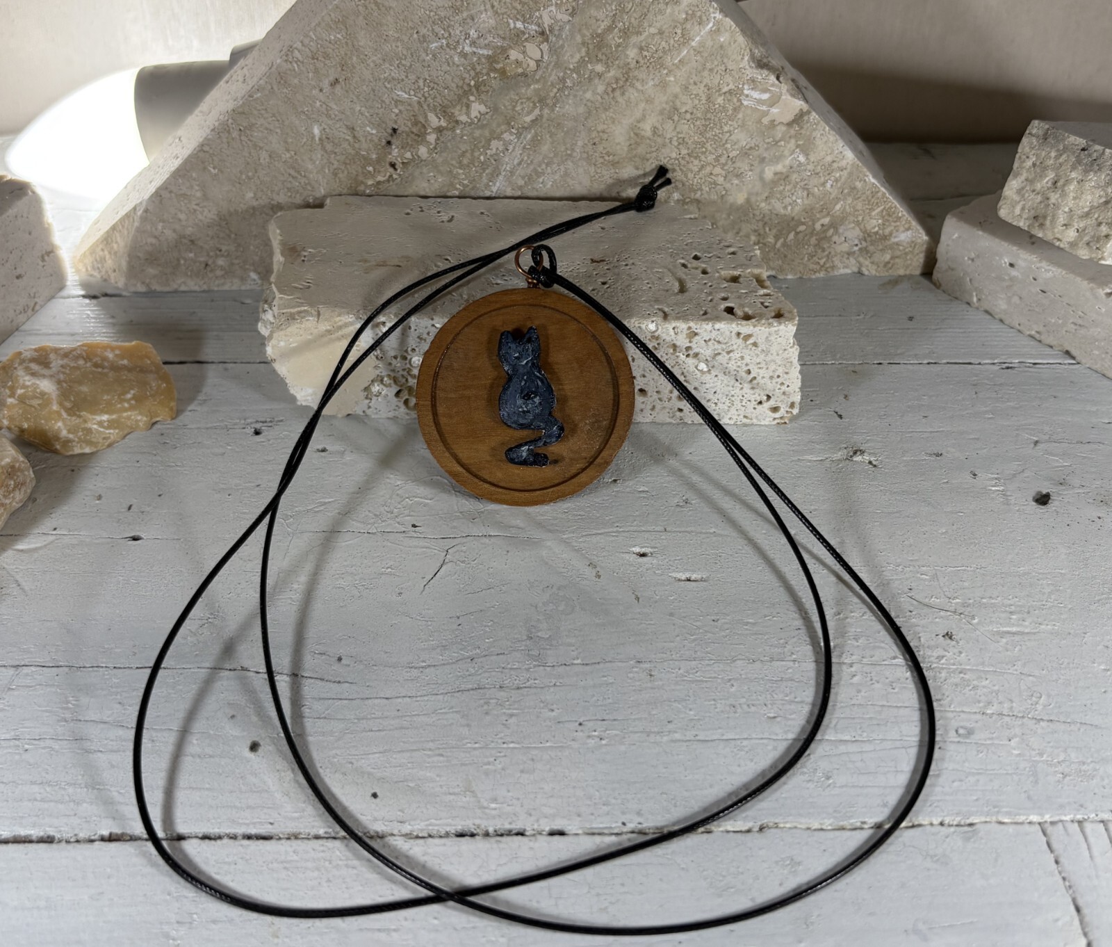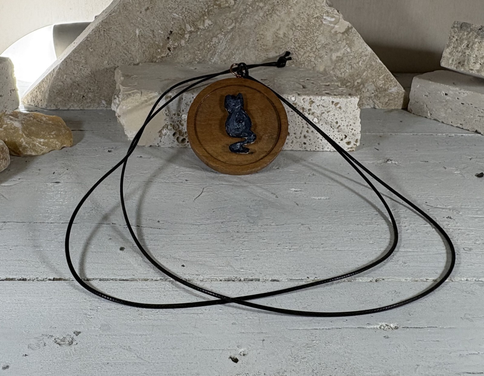 Unisex Olive Tree Necklace Pendant bijoux Handcrafted Product Features Material: olive wood and waxed cotton cord Size: 4,5cm Model: Cat Colour: Brown Suitable for : man and woman