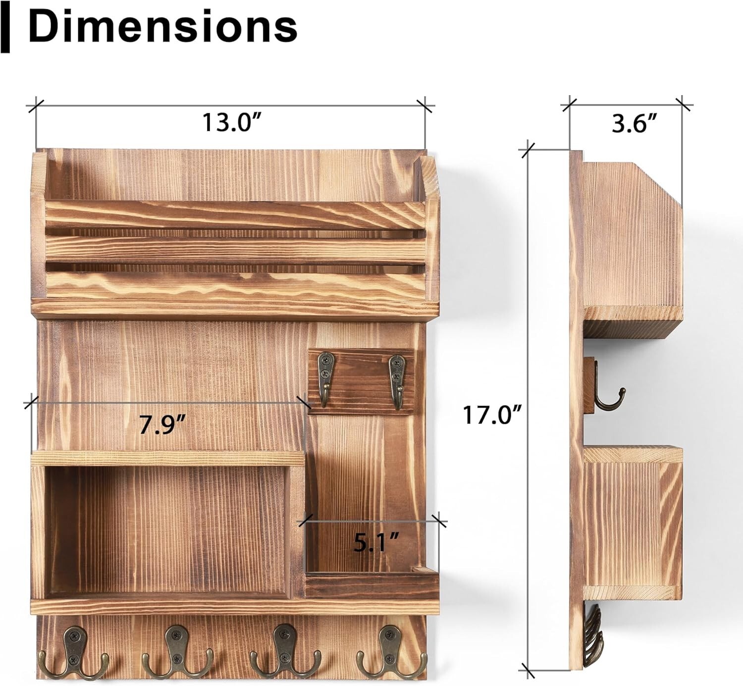 Just got this organizer and it’s a game-changer! The premium pine wood adds rustic charm while the bronze hooks stay sturdy even with heavy bags. Love how it keeps keys and mail neatly in place—perfect for entryway organization. Handcrafted details make it a standout piece!