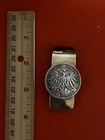 This elegant money clip is a true masterpiece, crafted by skilled artisans with utmost precision. Made with 925 sterling silver, it boasts a thick and sturdy design that is perfect for any modern man. The clip features a unique coin set, adding a touch of sophistication and style to any outfit.The silver color and metal theme of this handmade clip are perfect for any occasion, be it a formal event or a casual outing. Its features include a secure grip to hold your money in place, making it a practical and fashionable accessory. Elevate your style with this exquisite money clip, a must-have for every man's accessory collection. Handmade features Deutsch mark and Lira.
