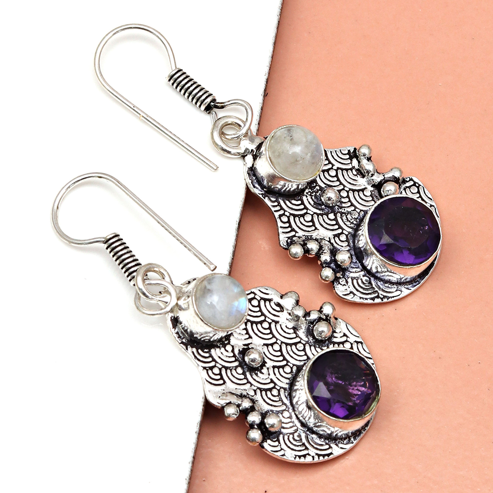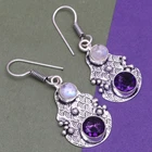 Handmade 925 Sterling Silver Amethyst Gemstone Earrings in Purple