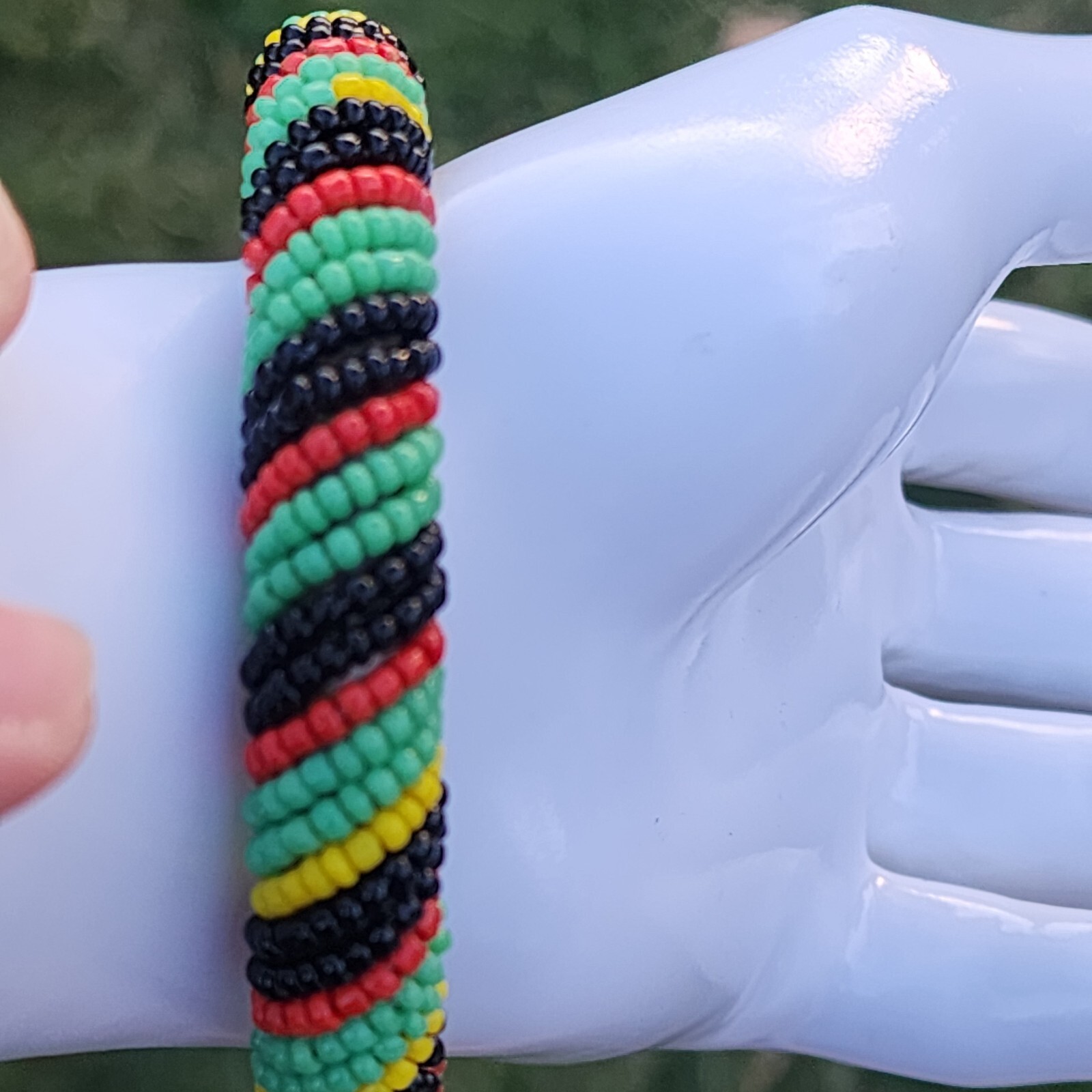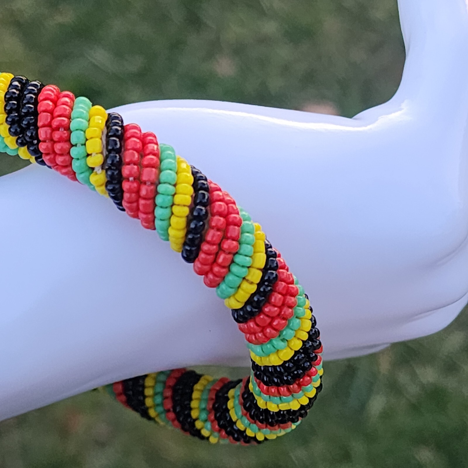 Bracelet Beaded Seed Bead Bangle Woven Handmade African Tribal Colors Round. Condition is Pre-owned. Shipped with USPS Ground Advantage.