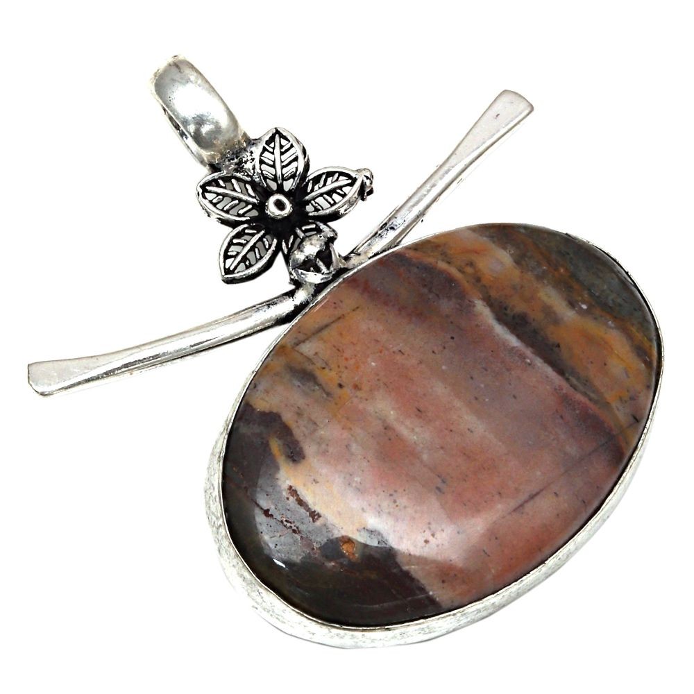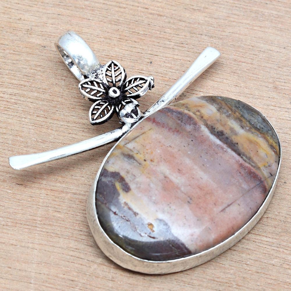 $ 15.31925 Silver Plated Rainbow Fluorite Ethnic Pendant 2.1 Inch Jewelry JW
