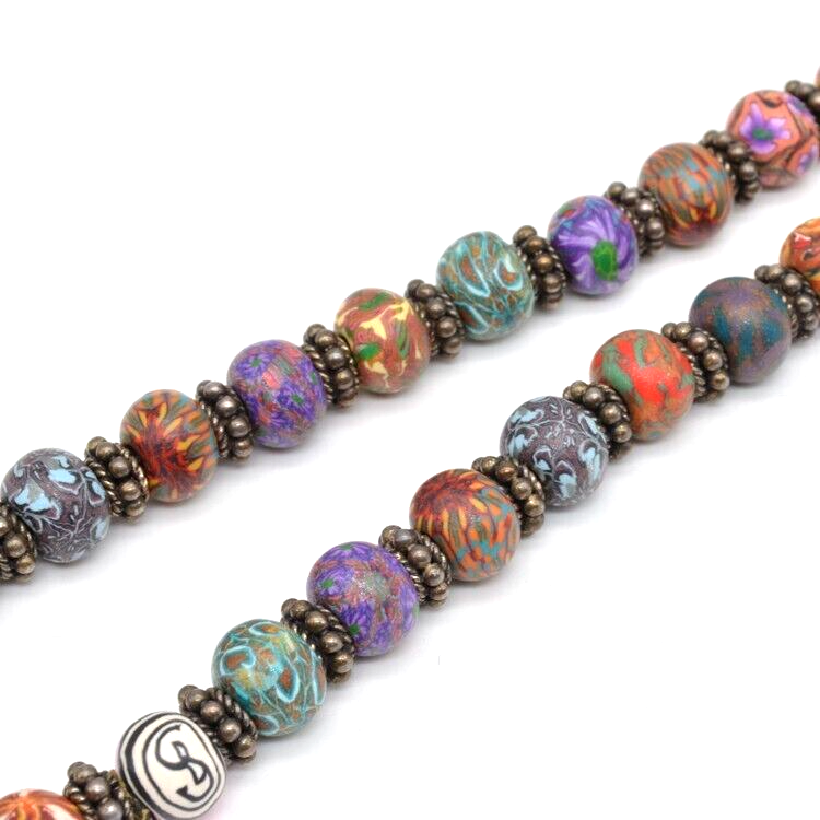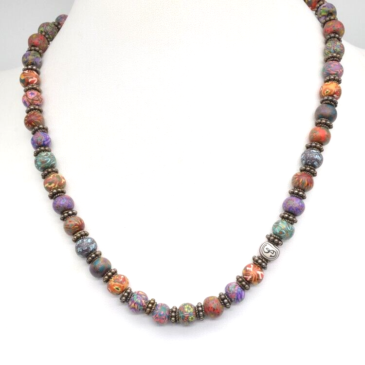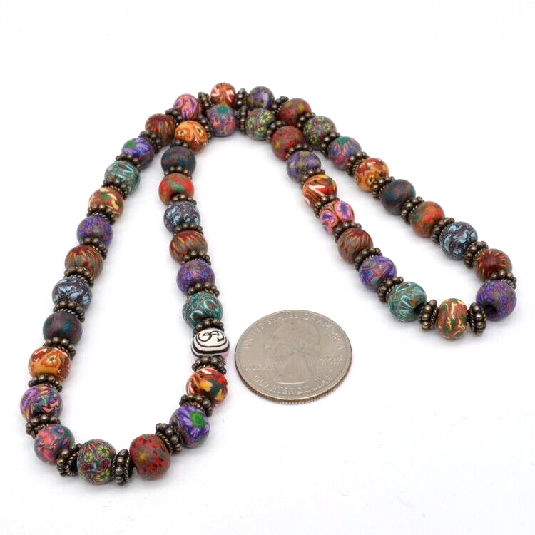She Beads Signed Beaded Necklace Hand Rolled Clay Beads 925 Spacers 45 beads & 45 sterling spacers. 17 inch elastic fabric cord. Beads measures about 8mm. Quarter is for size reference and not included. She beads were made by Sandy Rueve. Her store closed in 2016 and she beads are no longer made. Would make a great Easter or Mother's Day gift. Great gift for her: birthday, anniversary, or gift for yourself. As with any jewelry it is a choking hazard for small children. Thank you for viewing this item. Please check out my other listings on Ebay at Kentucky Fun Treasures! I will be happy to combine shipping whenever possible. Thanks!