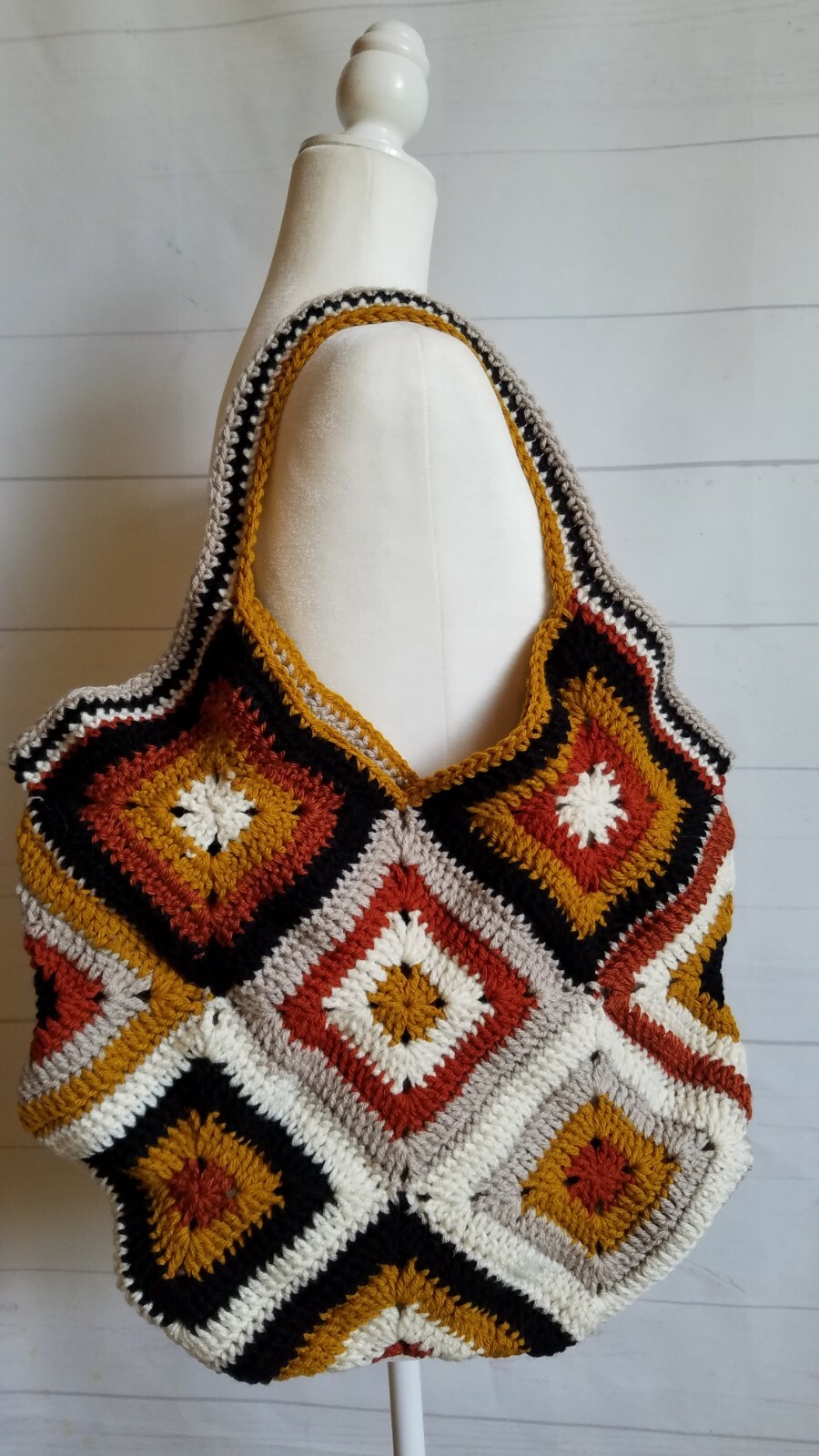 Handbag Tote Craft Bag Utility Handcrafted One of a Kind Crochet Retro Boho This is unlined double handle/straps approx. 16" wide x 22" tall to top of straps Hours of love have gone in to this one of a kind bag Inventory #4578