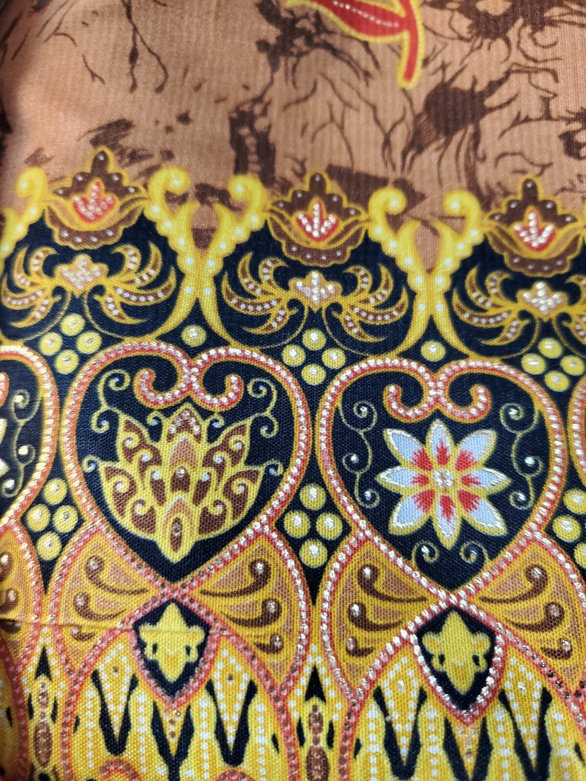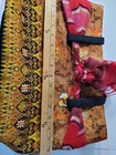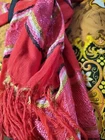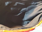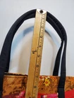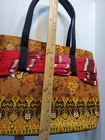 This Boho Tote Purse is a unique and handmade shoulder bag that features a beautiful red multicolor fringe scarf accent. The bag is made of a cotton blend exterior material and has a geometric/floral/heart printed pattern with gold, red, black, and multicolor tones. The shoulder strap is black and made of cotton blend material. The bag has a rectangular shape and measurements can be seen in pics. The bag has a zip closure and is perfect for various occasions such as travel, parties, cocktail events, casual outings, and workwear. It has a lightweight feature and the fabric type is knit. The bag is lined with black fabric and has a strap drop that varies and can be seen in the pictures. This Bohemian-style shoulder bag with a hippie vibe is a great addition to any fashion statement. Ships quickly with care. Unique piece!