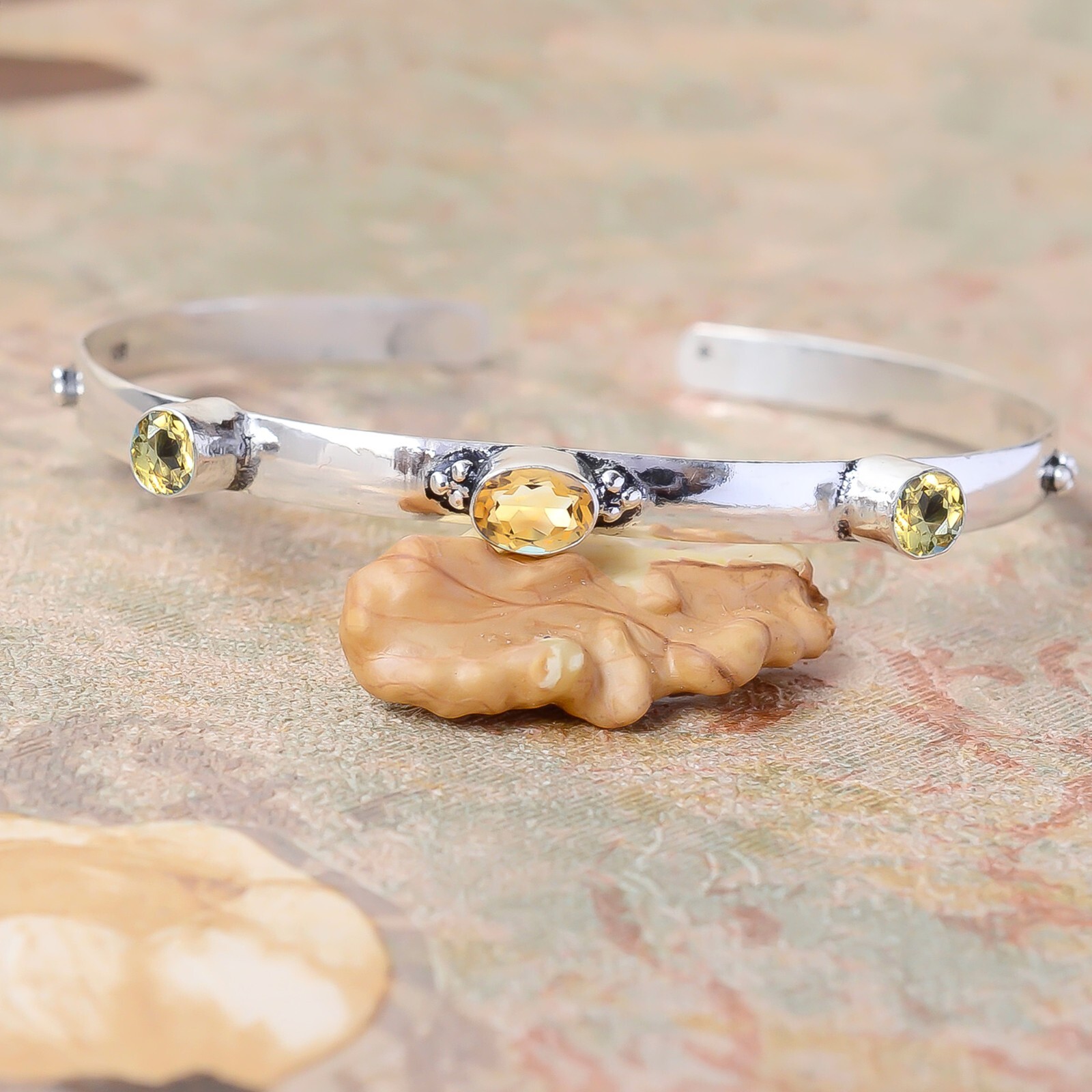Handmade Citrine Gemstone Bracelet in 925 Sterling Silver Cuff