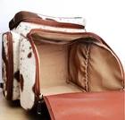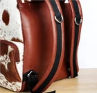 Backpack Cowhide Hair On - Handmade Bag Cowhide Leather = REAL LEATHER BACK EXTERIOR = COWHIDE FRONT EXTERIOR = LEATHER ZIPPER, POUCHES AND DETAILING = COTTON INTERIOR - Two Exterior Side Pockets = DURABLE ZIPPER = MEASURES 16" L X 9" W X 13" Depth approximately = Adjustable Back Handles (Foam and Leather) = Useful as Back Pack, Diaper Bag, Accessories Bag, Study Bag, Laptop, School, College etc. = Color Black, Brown with Name tag or without tag DUE TO THE NATURAL PATTERNING OF EACH COWHIDE, EACH CLUTCH IS UNIQUE. Shipping Policy: Free and Fast Shipping WORLDWIDE within 1-2 weeks.