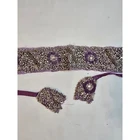 A stunning purple fabric sash belt adorned with intricate beadwork and sequin floral designs. This eye-catching accessory features delicate beading in silver and gold tones, creating a rich, textured finish. The ties allow for versatile styling, making it perfect for adding a touch of glamour to any outfit. Elevate your look for weddings, parties, or cultural events. Handmade items may have flaws, please look at pics closely. Measurements: • Beaded Section Length: 31.5 in • Beaded Section Width: 2.5 in • Tie Length (each side): 14 in Material: Beads, Metallic Fiber Style: Waist Belt Theme: Gypsy Accents: Beaded, Sequin, Tasseled, Embroidered Type: Belt Department: Women Pattern: Floral Features: Adjustable Keywords: beaded belt, embellished sash, purple accessory, waist tie, sequin belt, floral design, statement accessory, evening wear, bridal accessory, festival wear, couture belt, ethnic accessory Smoke free home Ships next business day
