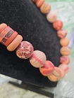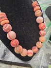 This necklace features Fimo clay balls in a peach color, strung on a black cord with an 18-inch length and 1.5-inch extender. The lobster closure adds a vintage touch to the piece, making it suitable for all occasions with its beach-themed style. The round beads are handmade, giving the necklace a unique and one-of-a-kind appeal. Perfect for those looking to add a touch of handmade charm to their jewelry collection.