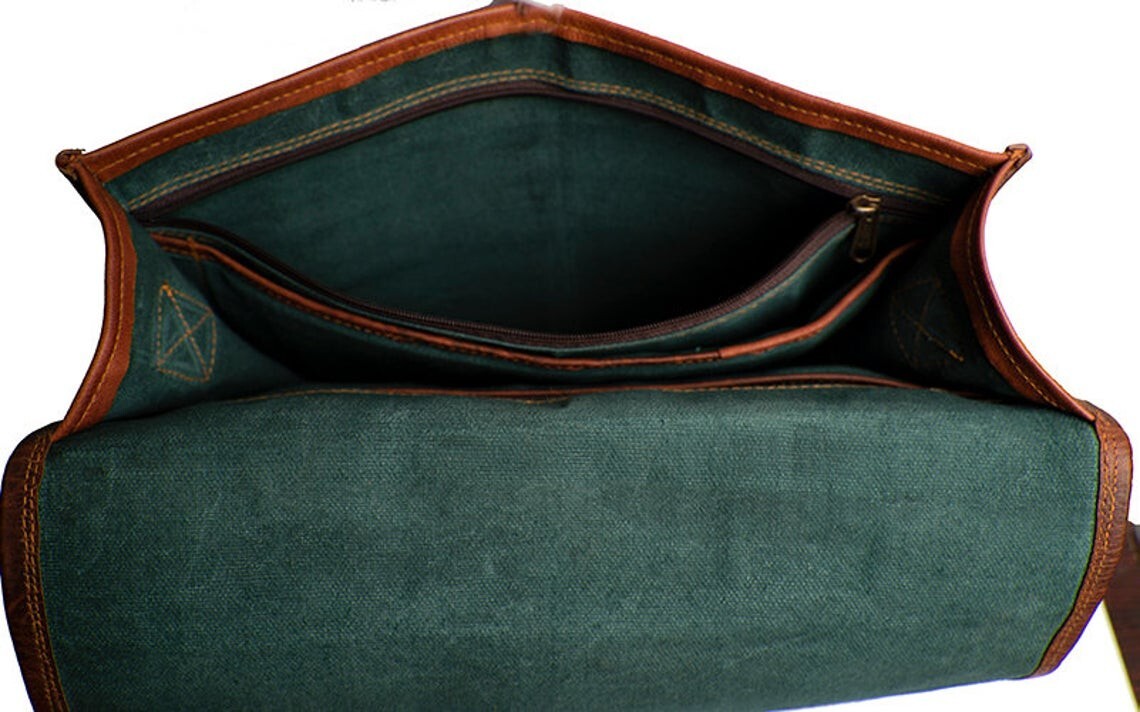 100% Genuine leather Products | Lining 100% Canvas I (MADE IN INDIA) Buy with confident 30 Days Return Policy Description Handmade Goat Leather Satchel Laptop Shoulder Bag QUALITY LEATHER BAG Each bag is individually made using goat leather by experienced crafts people .The bag gets better and better with the time as the leather softens and deep-ens in color. The tonality color of each bag might vary in accordance with the low and high temperatures from the heart of The Thar desert.The leather does not receive any chemical treatment. On the bags a special vegetable oil is applied to give more tonality to the dominant brown (light and dark) color of the bag also making it more resistant to the water.Each bag has its charm and style and a very special earthy smell that will assure you it’s real leather.Its lightness, flexibility and durability will not make you regret your purchase. HANDMADE BRIEFCASE SATCHEL BAG FOR STUDENTS, OFFICE WORKERS AND COMMON PEOPLE Features Size:-13 x 17 x 5" inch XX Large Green canvas fabric Internal 2 compartments and 2 zipper Thick adjustable strip (See the picture for more detail) Strong, light-weight goat leather, tanned without the use of chemicals Leather softens and darkens with use Color and texture of the leather varies Natural real leather smell, just like a luxury car or lounge suite Solid brass buckles and fixtures - will last for years Has a wonderful natural look, and feel Each bag is uniquely individual due to slight color and marking variations on natural leather Brand New Handmade Leather Bag without tag Payment Using Paypal is the simplest and easiest way to pay, and is the way we prefer, but if you have a reason that you don't want to use Paypal that's OK, we will accept credit card payments and bank deposits, please contact us to arrange these after purchasing. we know that you will want to get your goods sent quickly so please remember to make your payment quickly after purchase, and we will dispatch within one business day after you have made your payment. if you need a bit of time to make your payment, that's also ok, please contact us to advise how long you need, we are happy to hold your goods for up to week before you pay. if you are purchasing from overseas,please be aware that we can only accept Paypal. Shipping Combine shipping (Heavy discounts) available Tracking details are availableExpress delivery (3 days) available on minimal extra charges, please write to us Shipping Partners - DHL, FedEx, UPS etc and like other International Courier Service providors onlyShipping may be influenced by holidays, public events and/or any othe uncertainties. We can not guarantee the exact arrival time.Please understand we could not control how the customs work at destination.If you are very care about the seemingly shipping time, please provide your contact numbers. We ensure to keep it confidential. Terms Of Sale Returns accepted Please write to us before returning the item Buyer should contact us within 20 days of receiving the item Refund will be given in refund or replacement on buyer's choice. Return shipping will be paid by the buyer Item must be returned in its original condition Please write to us for any clarification on RETURN POLICY About Us Namaste........ We are manufacturer and wholesaler of leather goods and specialized in Office Briefcases, Office Bag, College School bags, Travel Bag, Handbags, Purses, Wallets, leather journals and diaries and many more. We use quality leather of Goats and Camel. We offers customize designing and wholesale prices for bulk order. For more details, please write to us. Please visit our store and have a look of our other items If anything unanswered, please do write to us. Happy Shopping!! Please contact us via eBay with any questions you have about our products. We normally respond to any questions within one or two working days. Feedback & DSR If there is any problem with product or delivery, please contact us BEFORE leaving the feedback and below 5 star rating. 100% customer satisfaction is our goal. Your 5 Star rating will help us to reduce cost in your next purchase supreme.
