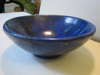 Lapis Lazuli Bowl Diameter Approx 5" Height Approx 2 " Genuine Lapis Lazuli Pieced together by hand of genuine handcut Lapis stones Imported from Afghanistan No two pieces are alike because of handmade nature Unique and stunningly beautiful piece A true collectors item