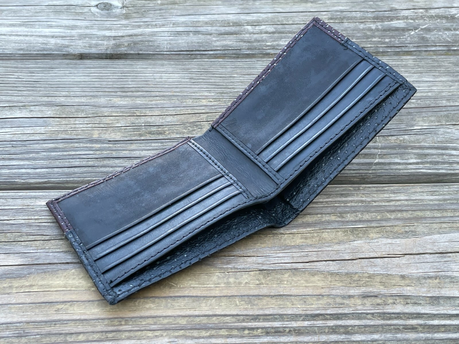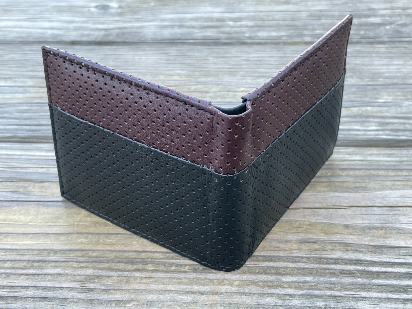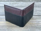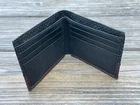 Handmade Card Holder Black/Brown Genuine Leather Bi Fold Wallet Men Purse Handmade Color: Black/Brown Genuine Leather Size: 3.5 X 4.5 inches (closed) 3.5 X 9 inches (opened) 6 slots for credit/debit cards 2 Hidden slots 2 slots for bills Made in Pakistan Brand New. never used.