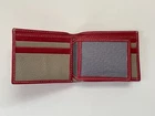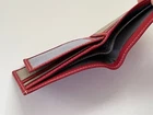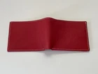 Handmade Card Holder Red/Tan Genuine Leather Wallet Bi Fold Purse Money Clip Cardholder Handmade Genuine Leather Color: Red/Tan Size: 3.5 X 4.5 inches (closed) 3.5 C9 inches (opened) 8 slots for credit/debit cards 1 slot for photo ID 2 Hidden Slots 2 Slot for bills Made in Pakistan Brand New. never used.