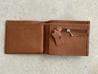 Brown Card Holder Wallet Handmade Genuine Leather Card Holder Bi Fold Men Purse Wallet Handmade Genuine Leather Color: Brown Size: 9 inches length (opened) x 3 1/2 inches wide, 4 1/2 inches (closed) 7 slots for credit/bank cards 2 separated slots for bills 2 Hidden pockets behind the credit/bank card slot 1 coin pocket with zip 1 Slot for photo ID Made in Pakistan Brand New. Never used.