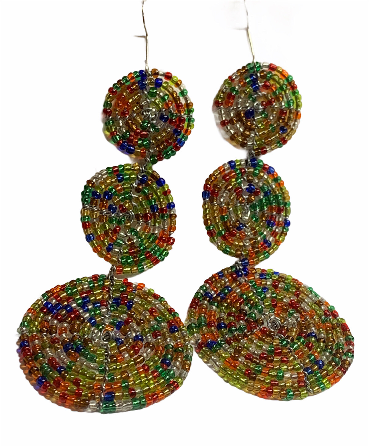 Handmade Glass Seed Long Dangle Earrings. Shipped with USPS First Class.