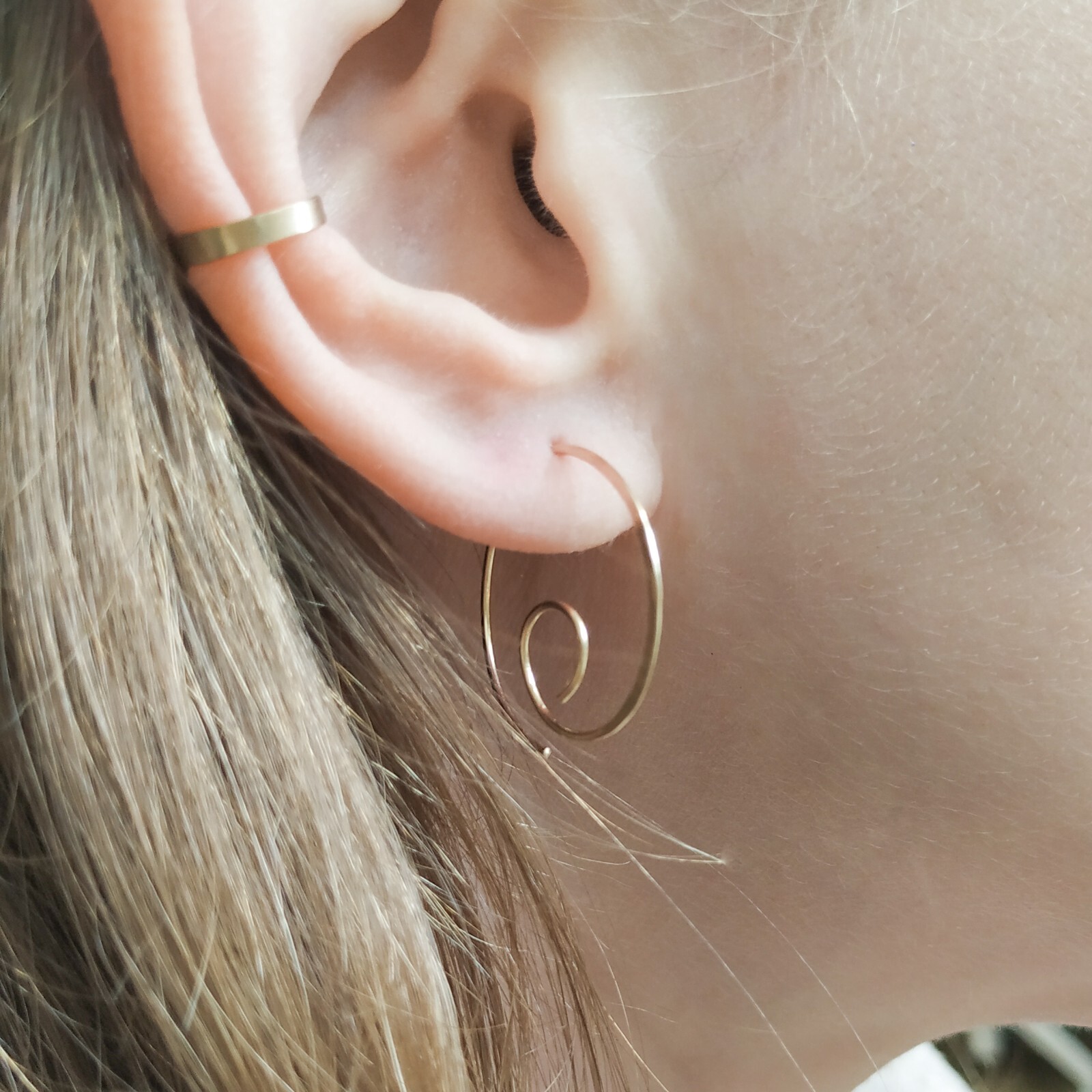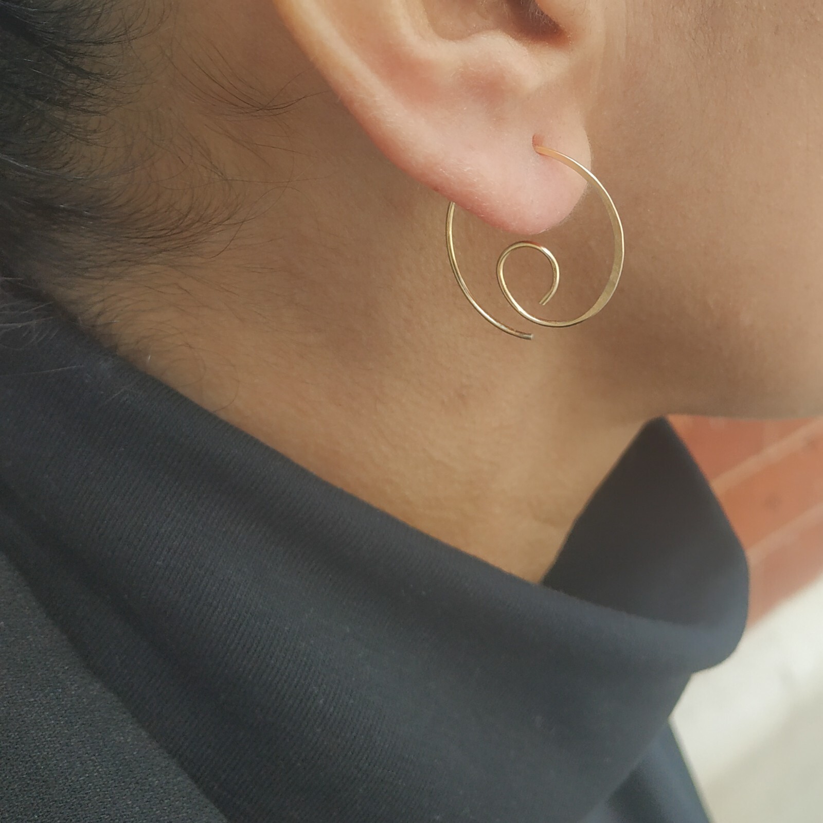 Thin Spiral Hoop Earrings Medium sized hoops that thread through the piercings, handmade in 14k gold filled, sterling silver or 14k rose gold filled, in a beautiful spiral shape with hammered details for some extra shine! Easy, casual and fun earrings. CUSTOMIZATION OPTIONS ⋆ ⋆ ⋆ ⋆ ⋆ ⋆ ⋆ ⋆ ⋆ ⋆ ⋆ ⋆ ⋆ ⋆ ⋆ ⋆ ⋆ ⋆ ⋆ Material: 14k Gold Filled / Sterling Silver / 14k Rose Gold Filled ⋆ Diameter 2 cm