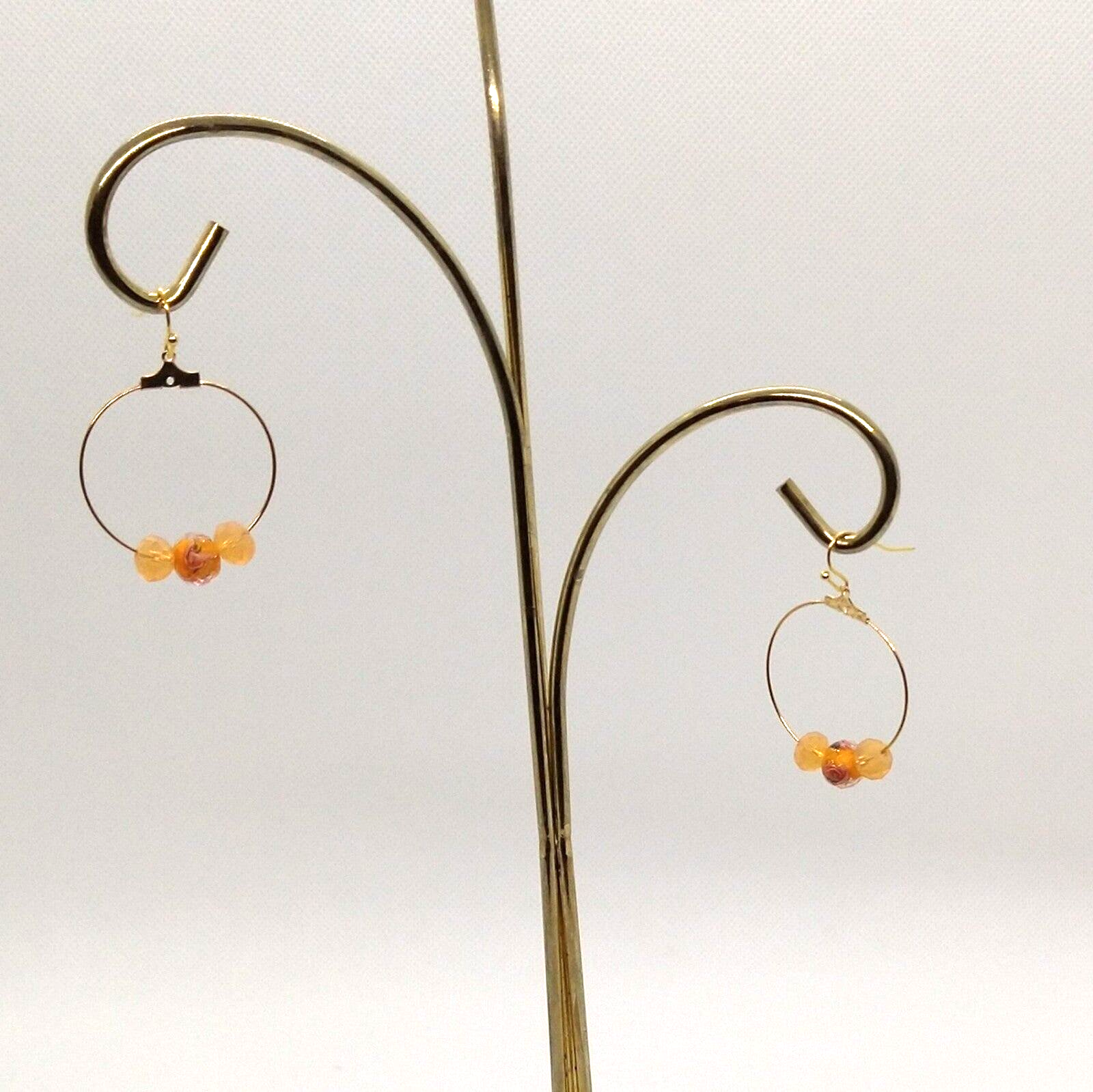Handmade Hoop earrings Orange beads Gold tone Fishhook ear wires See Photos for Measurements
