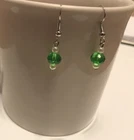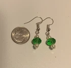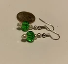 Dangle Fashion Earrings Handmade. Green Crystal and Pearl White Beads. Wire Hook Closure with Backings.