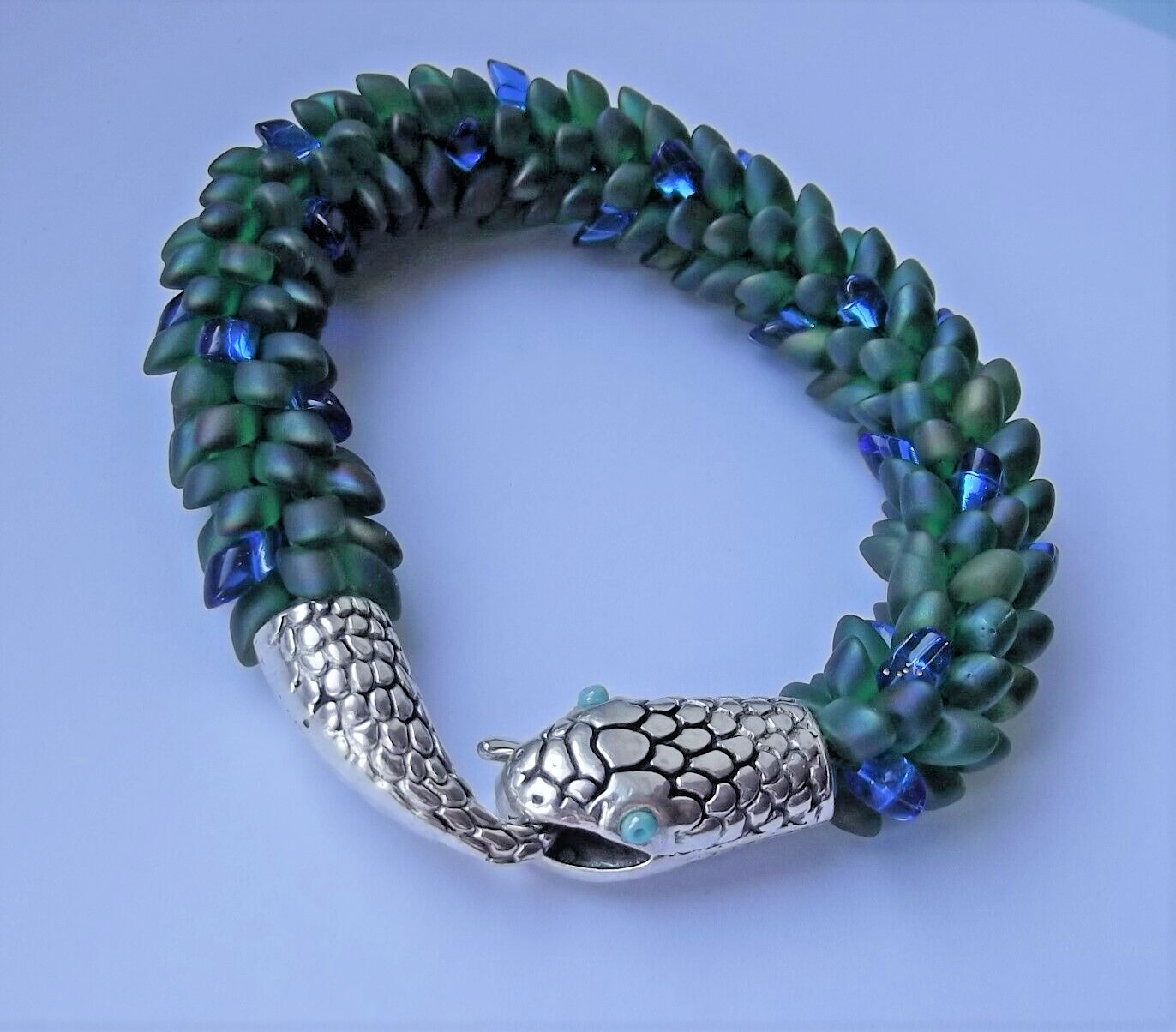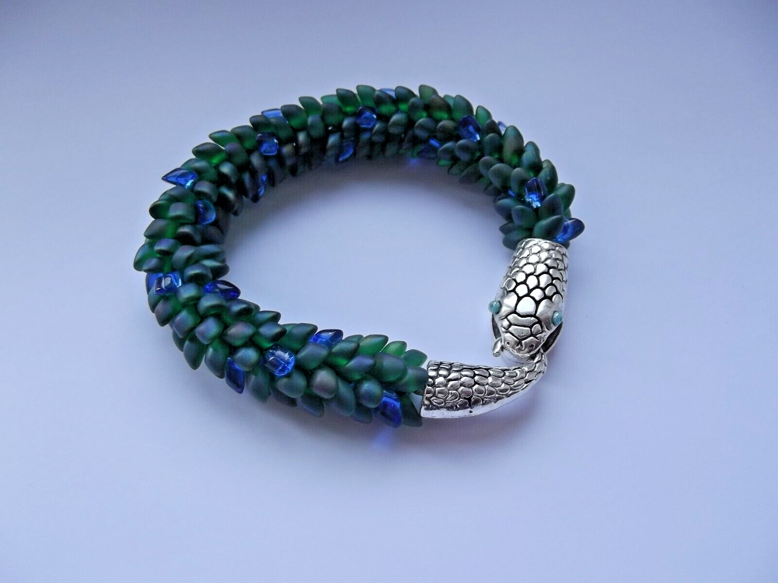 Bracelet KUMIHIMO "GREEN DRAGON" ~ 19cm (7,5"). Handmade. I used green Brazilian waxed cord, Japanese beads and silver colored clasps. Condition. Please look carefully at all the photos, as they are part of the description! You buy exactly what you see in the photos. Shipping policy Airmail shipping with tracking number. Delivery takes 9-28 business days as usual. Feedback Please leave feedback for me after your parcel arrives. This lets me know that you received your item. Problems If there are any problems with the delivery time or product, please contact me before leaving a neutral or negative feedback. I will do my best to solve your problem. I will answer all questions, write to me. Please visit my other auctions!