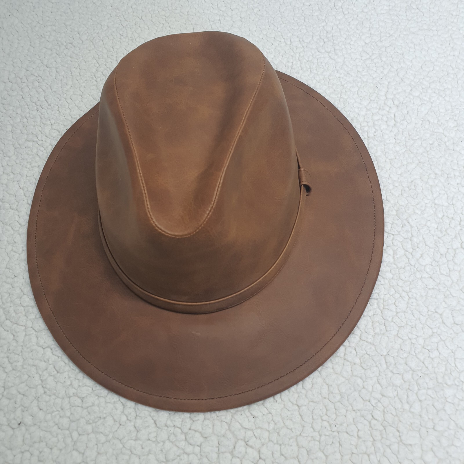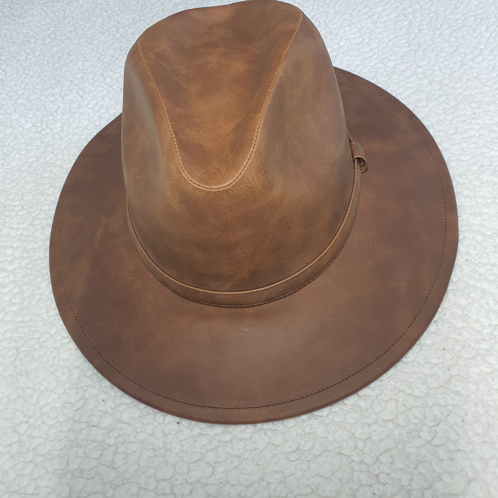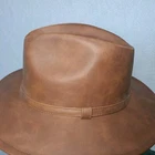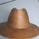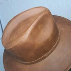 DESCRIPTION: Style: Indiana-style hat Color: Camel Brim: Curved Size M: 56-58 cm (22-22.8 inches) Features an inner elastic band for a better fit Decorative camel-colored band COMPOSITION Material: 100% Synthetic leather MADE IN MEXICO