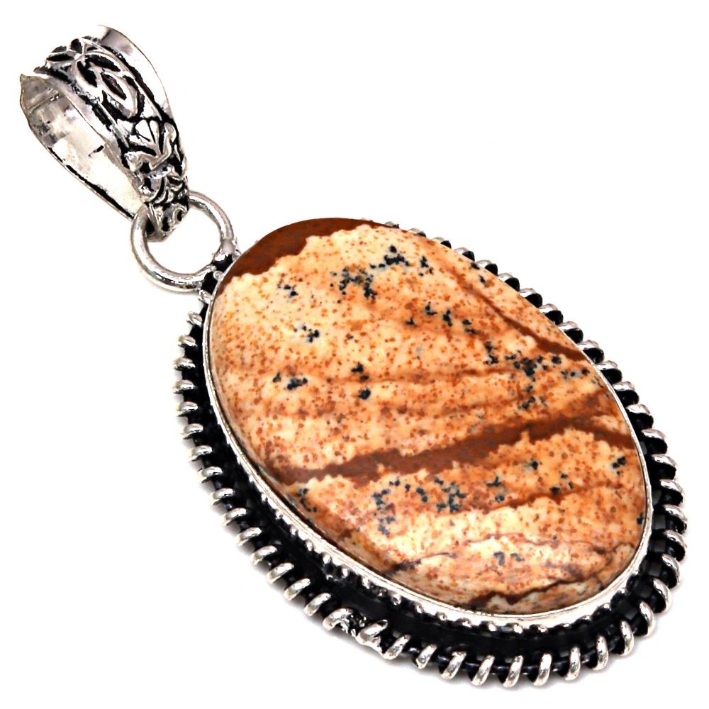 Handmade Silver Pendant with Picture Jasper Gemstone Gift for Her 2 Inch