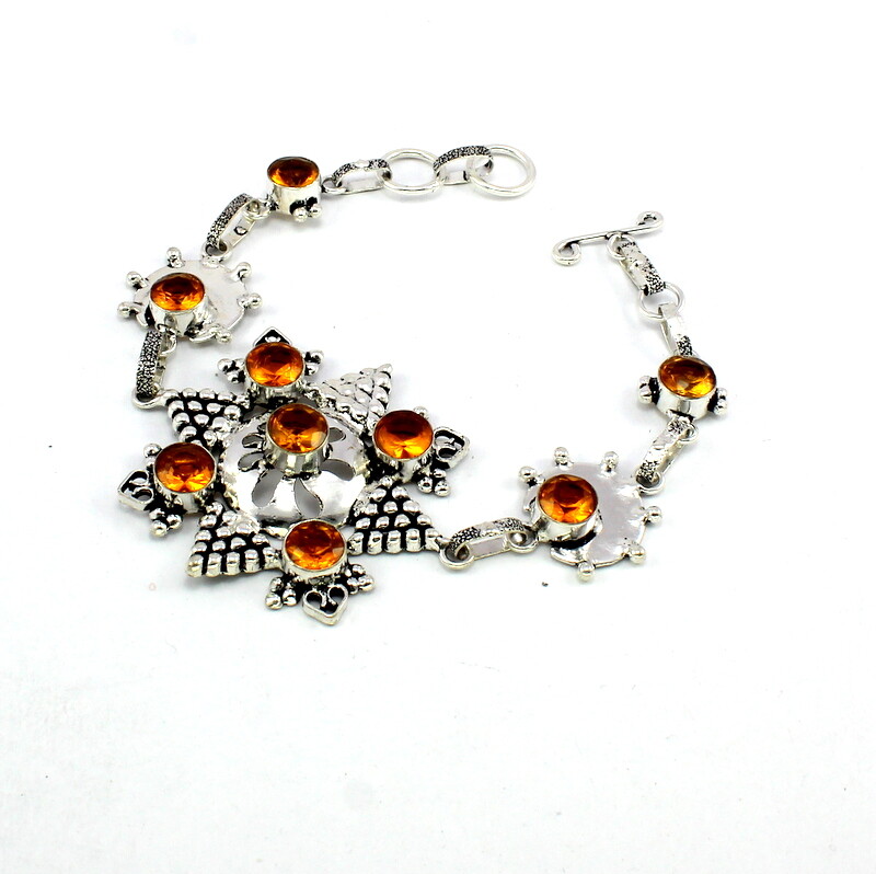Metal: Silver Plated Theme: Nature Main Stone: Quartz Charm Type: Bead Cut Grade: Excellent Main Stone Treatment: Not Enhanced Color: Yellow Main Stone Creation: Natural Setting Style: Bar Base Metal: Brass Material: Gemstone Country of Origin: India Brand: Handmade Style: Beaded gtin13: Does not apply Number of Gemstones: 9 Shape: Round Closure: Toggle Main Stone Shape: Brilliant Cut Type: Bracelet Country/Region of Manufacture: India Item Length: 7 in Length (inches): 7.5" Adjustable Metal Purity: Brass UPC: Does not apply Main Stone Color: Yellow