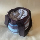 Handmade "One of a Kind" Crochet Knit Boho Tote Bag 13"x12”x12" NWOT Handmade in San Jose, CA Button and loop closure Striped pattern: Alternating colors: Charcoal, Gray, Light Blue Strap is Charcoal colored One-of-a-Kind - Only one of these made. New without tags. The maker has tags for certain items. Towel not included.