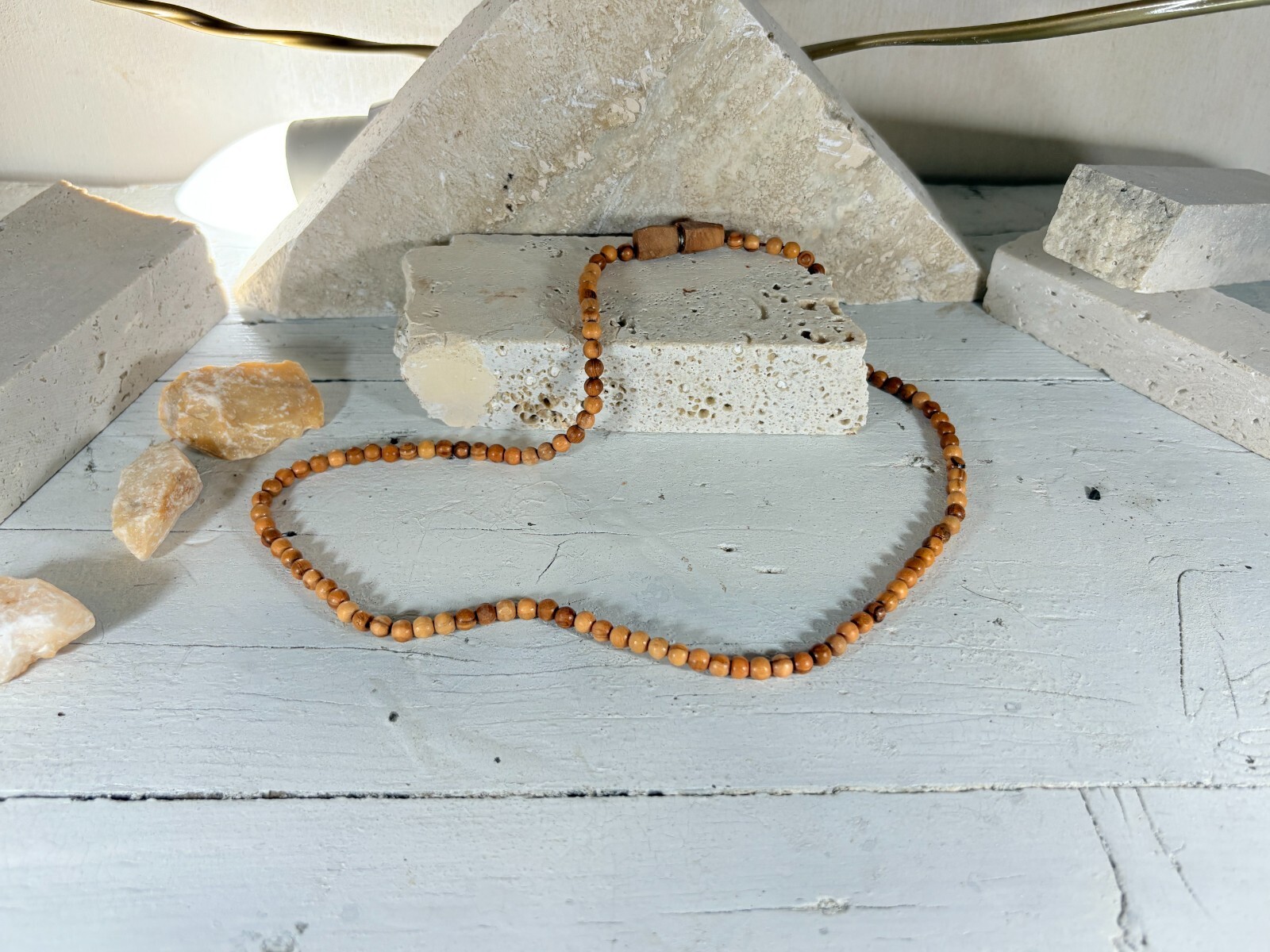 Necklace Olive Tree Beads 4mm Unisex Pendant Handcrafted olive wood necklace suitable for men and women choker It is made with 4mm olive beads and olive magnet clasp. Unisex. This necklace is made of small round wooden beads. The beads are light brown in colour and the necklace has a simple, minimalist design.