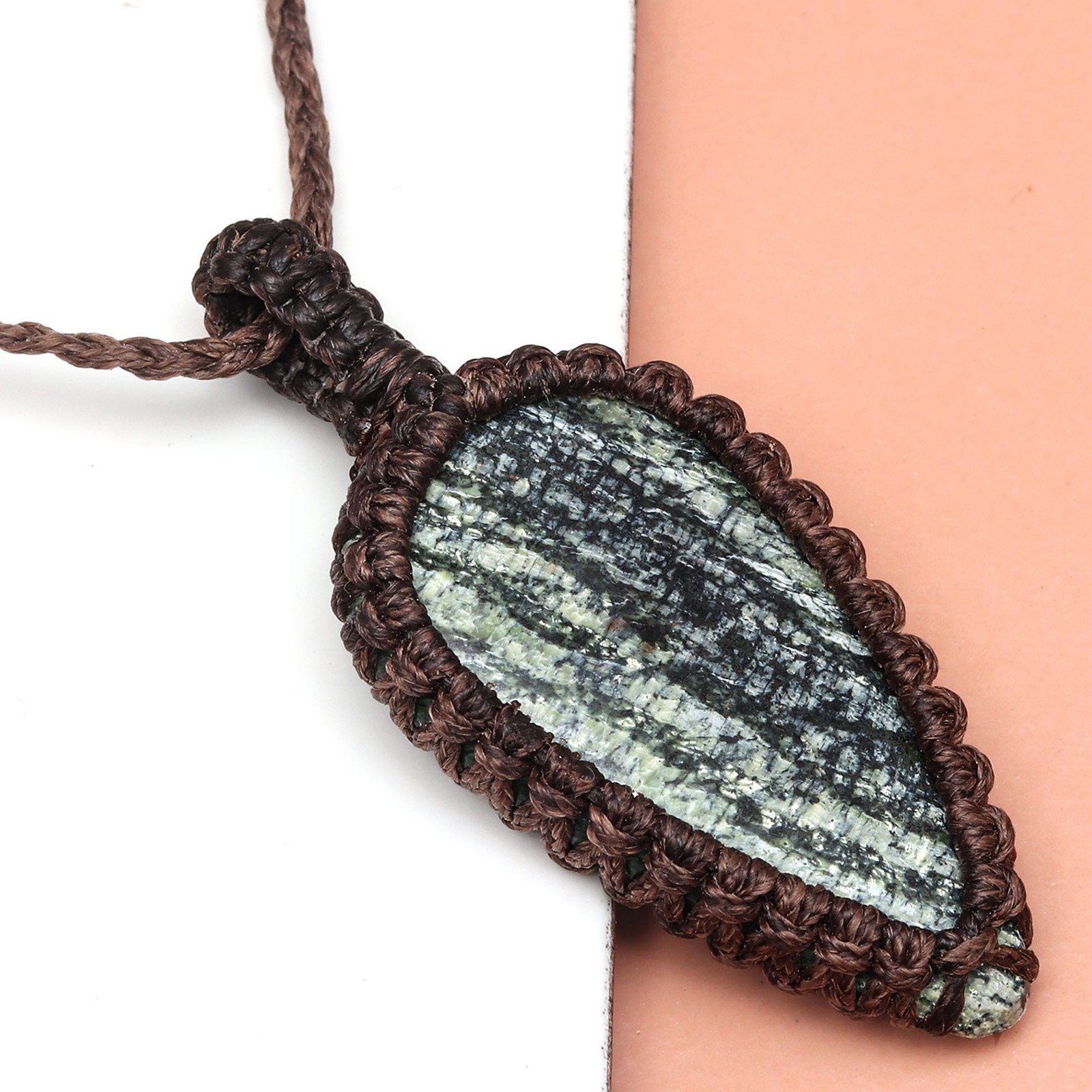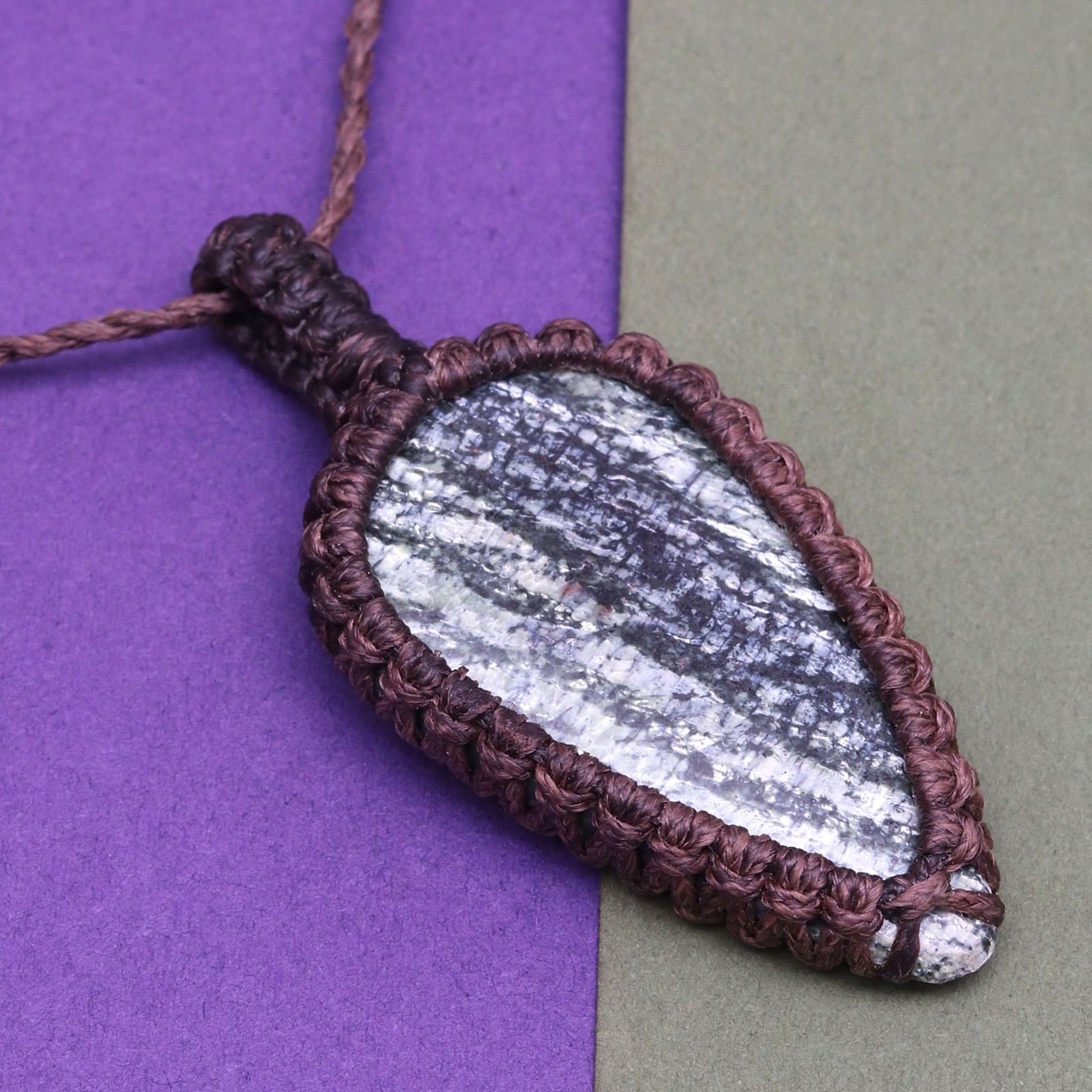 Handmade Zebra Jasper Gemstone Necklace in Macrame Thread 20-36 Inches Unisex