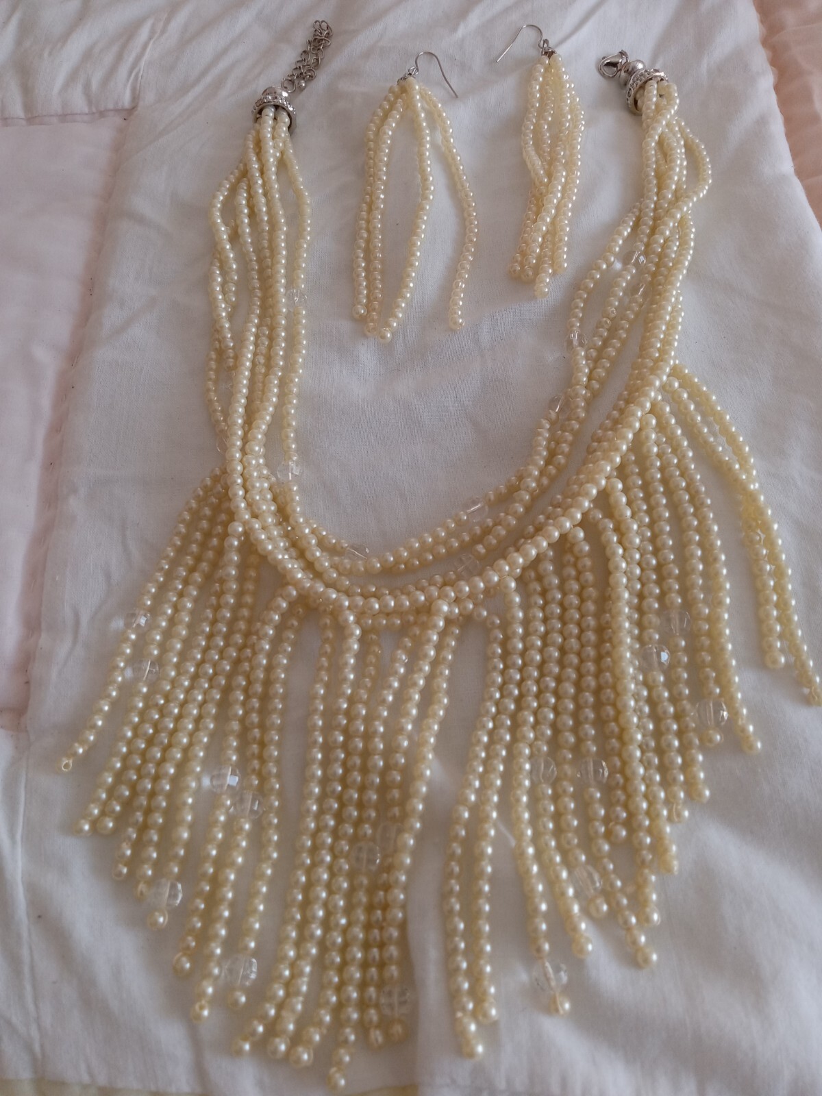 Vintage Beaded Necklace Set. Lays beautiful when wearing. Long earrings to match. 16 inches long with a extender that is 3 in.