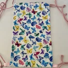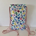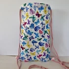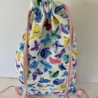 This handmade backpack features a drawstring closure and is made of durable canvas material. The rectangular shape and multicolor exterior with butterfly pattern make it a perfect choice for any occasion. The backpack comes with adjustable straps for a comfortable fit. It also includes a laundry pouch and is lightweight, making it easy to carry. The backpack is part of the Designs By Reena product line and is a limited edition with a double loop double backstitch style. It is non-toxic and was made in the United States.
