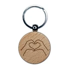 Hands Making Heart Engraved Wood Round Keychain Tag Charm