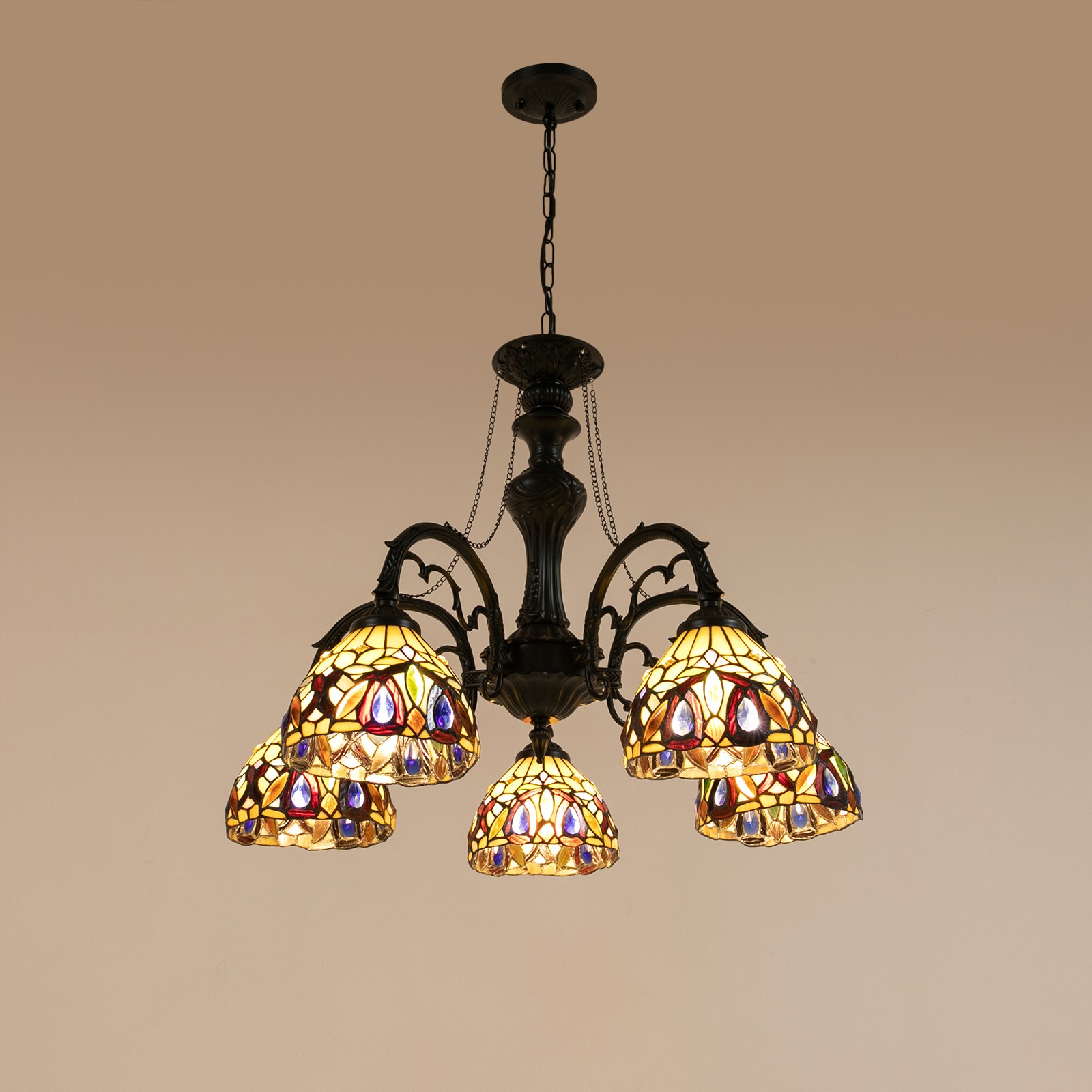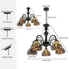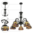Hanging Chandeliers for Dining Room, 5 Lights Antique Style Ceiling Pendant Lamp Description Illuminate your living spaces with a touch of regal elegance with the pendant lamp. Exclusively designed to evoke the charm of antique styling, this pendant lamp is an artistic masterpiece that seamlessly blends into many sophisticated dining room, foyer, or bedroom setting. Its intricate metalwork and meticulous craftsmanship lend an air of timeless luxury, transforming your space into a realm of refined aesthetics. Key Features Super Solid: It is made of high-quality iro n, and tin, and the surface undergoes baking paint process, with rust prevention and anti-corrosion prote ction, ensuring a long service life. Chic Appearance: Combining the beauty of contemporary art with the spirituality of design, this product combines a beautiful stained glass shade with a peacock plume motif, allowing it to blend into most home décor styles and create a visual experience that is pleasing to the eye. Powerful Lighting: You can install up to 5 60W E26 bulbs to provide powerful lighti ng (161.46-215.28ft²). The glass shade not only decorates the shape of the lamp but also won't block the light. Enjoy Your Night: Turn on this lamp at night when you come home from a hard day's work. A warm and soft light can fill your heart with warmth and emotion, making your monotonous life more vivid and enhancing your sense of happiness in life. Adjustable Height: You can adjust the length of the hanging chain within 15.74in a ccording to your own preference to accommodate different ceiling heights. Humanized Design: By purchasing a dimmer switch and dimming bulbs (both not included), you can adjust the light to create different lighting effects and protect your eyes. It also supports a wide voltage range (100-240V) and can adapt to different voltage environments. Ideal Gift: The intricate design featuring peacock feathers symbolizes prosperity, luck, and beauty, making this product not just a source of light but also an excellent gift for housewarming, birthdays, and holidays to parents, friends, and lovers. Easy to Clean: The open design and smooth surface make it easy to clean. You only need to use a towel to completely wipe off the dust and dirt. Simple Installation : The simple structure, complete accessories, and clear installation instruction allow you to quickly install this product, which is convenient. Good Customer Service: We stand behind all our guests and look forward to assisting you with your purchase. It is our pleasure to answer your confusion and questions. The end of the story between us is not "we sell and you buy". Details Standard Lamp Holder: With a standard E26 lamp holder, it is compatible with a variety of Edison, CFL, or LED light bulbs . Stable Base: The round base(4.72inch) increases the stress area, ensuring the product is firmly fixed and improving the safety of use. Application With a lighting area of 161.46-215.28ft² , it is suitable for the living room, dining room, study room, bedroom, kitchen, lobby, hallway, libraries, restaurant, church, cafe, shops, waiting room, hotel, beauty salon, attics, foyers, basements, bars, clubs, dining rooms, porches , and so on. Specifications Color: Colorful Style: Retro Assembly Required: Yes Material: Iron, Tin, Glass Efficiency: E Voltage: 100-240V Max. Bulb Power: 60W Control Method: Wall Switch(Not Included) Mounting Type: Ceiling Mount Indoor/Outdoor Usage: Indoor Surface Treatment: Baking Paint Light Source: 5* E26 Bulbs (Not Included) Applicable Area: 15-20m²/161.46-215.28ft² Base Diameter: 12cm/4.72inch Chain Length: 40cm/15.74inch Each Lampshade Diameter: 18cm/7.05inch Gross Weight: 6.5kg/14.33lbs Net Weight: 6kg/13.23lbs Package Size: 66*37*26cm/25.98*14.57*10.24inch Package Included 1* Pendant Lamp 1* English Instruction All Accessories for Installation Notes Please check the dimensions of the product before ordering to ensure it fits your home. Please note that this product can not be installed on sloping ceilings. Please note that this product does not include E26 bulbs, you will need to purchase one yourself. We recommend using the warm white light bulb with a wide beam angle. Please read the instructions completely before use. Please make sure the power is cut off before installation. To ensure your safety, we recommend that two people install it together. Please install it by someone with an electrical license if necessary. Please wear electric insulation gloves (not included) and avoid scratching the surface of the item and the electric wire when installing. Please use it within the applicable voltage range and clean it regularly. Please cut off the power supply when you clean the item. Please wipe with a soft cotton cloth(not included) and do not use household cleaning agents. Please allow the slight color difference caused by the shooting light and the 1-3 cm error due to manual measurement, and make sure you do not mind before ordering. Payment Delivery details Terms of sales About us Contact us Payment We accept ebay payment 。 Fees such as import duties, taxes are not included in the item price or shipping costs. These charges are the buyer's responsibility. Delivery details Shipping: 2-9 working days to: USA Terms of sales We maintain high standards of excellence and strive for hundred percent customer satisfaction. Feedback is very important to us. We hope that you contact us immediately before you give neutral or negative feedback, so that we can address your concerns. It is impossible to address issues if we do not know about them! About us Your satis faction is our ultimate goal. We work hard to earn your trust and future business. Our certified technicians have tested each item before shipping. The unit comes with 1 year limited warranty on all manufacturing defects. a) If you receive a defective item, you may return it or ask for a discount. Please contact us within 14 days after you receive the package. b) What you ret