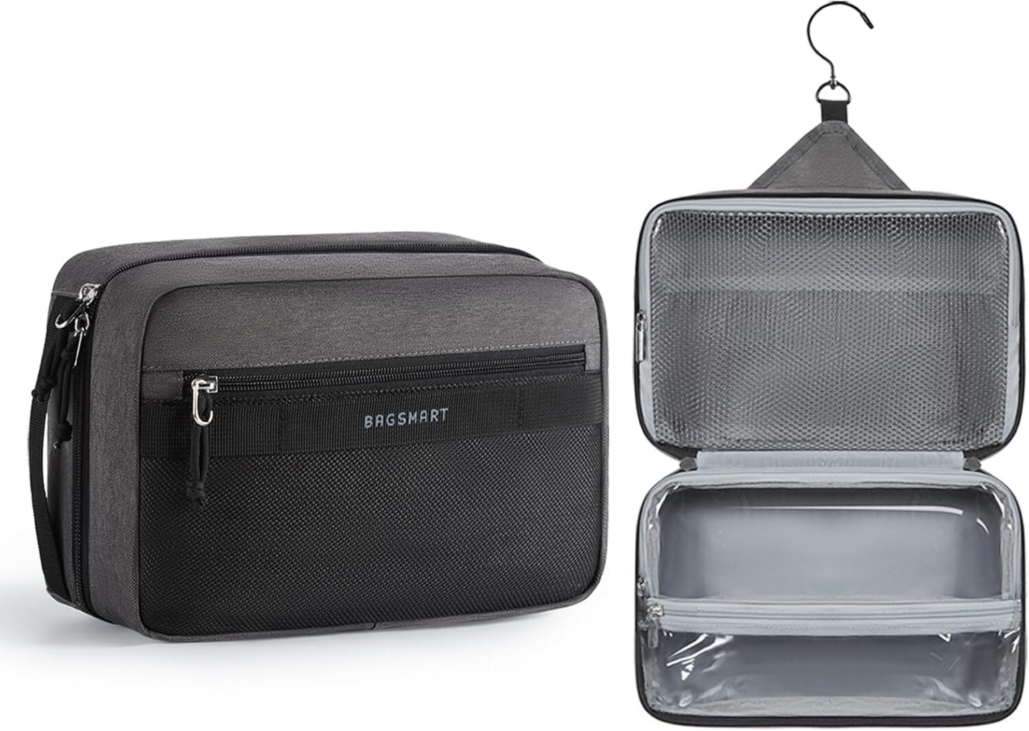 Toiletry Bag Hanging Dopp Kit Water resistant Shaving Bag for Toiletries Black Large Capacity & Easy Organization: Measuring x x inches, this toiletry bag boasts ample space with well-designed compartments, including three mesh pockets and a large section for essentials like face wash and shampoos. Made from durable, water-resistant PVC mesh, it features a zippered closure for secure storage and easy cleaning Wet-Dry Separation Design: This toiletry bag features a dual-compartment lower section for optimal organization. The spacious main compartment is perfect for wet items such as towels and bath products. A waterproof zippered pocket keeps essentials like toothbrushes and toothpaste secure. An additional external pocket offers quick access to small items like your smart, ID, wallet, or band-aids, ensuring convenience and efficiency Premium Material: This toiletry bag is crafted from robust polyester fabric for unmatched durability. Equipped with high-quality metal zippers and nylon cords, it offers a smooth glide for effortless opening, even when your hands are wet or soapy. Travel Convenience: This toiletry bag boasts a 360° swivel hook for easy hanging in any setting, including bathrooms and gym lockers. Made with water-resistant fabric, it protects your essentials from moisture. The robust side handle enhances portability, making it ideal for travelers. Versatile Use: Perfect for men and women, this stylish toiletry bag suits gym sessions, travel, business trips, or daily use. Its practical design makes it an ideal gift for occasions like Valentine's Day, Father's Day, Christmas, and New 's.