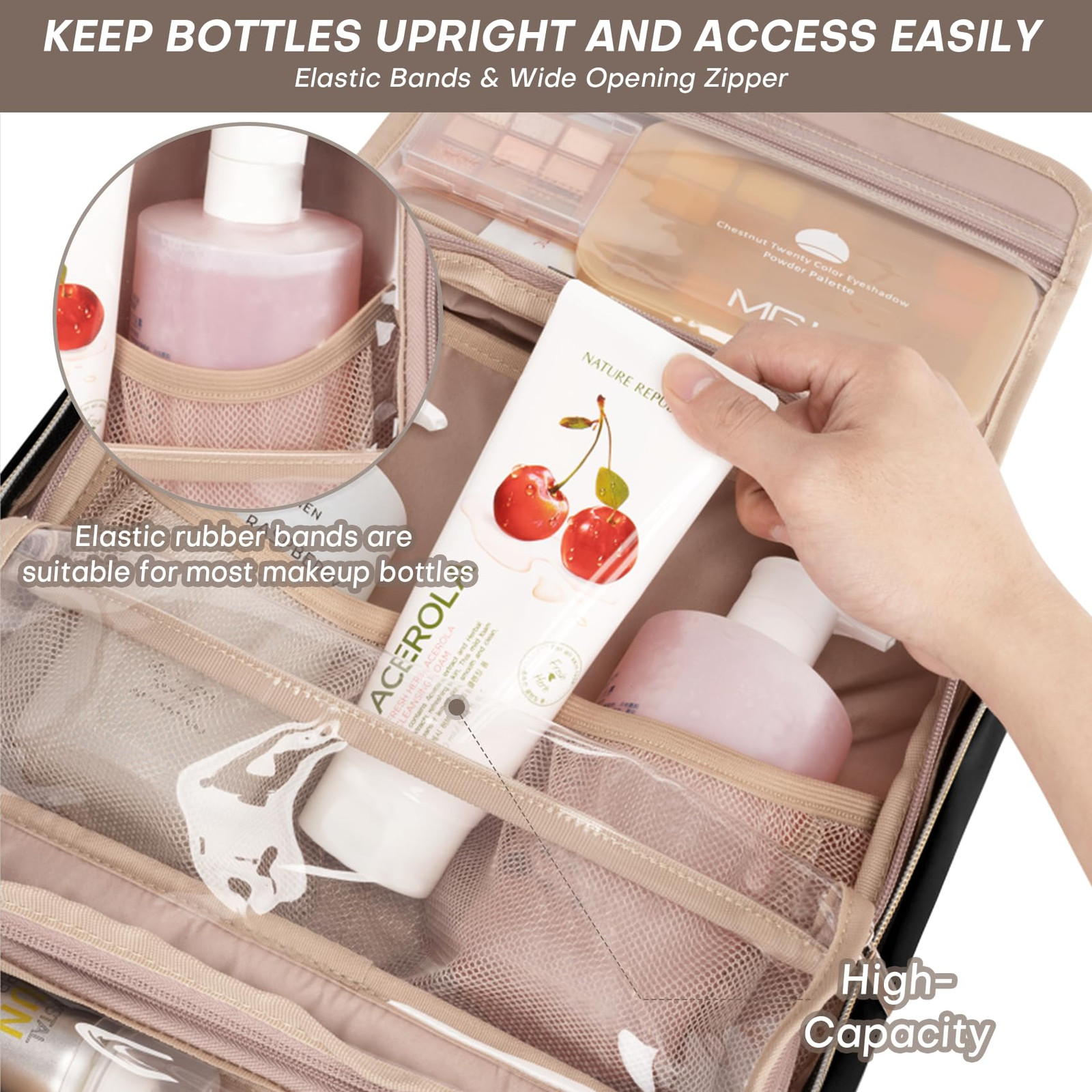 This toiletry bag is a game-changer for travel! The U-shaped pockets fit bulky bottles like shampoo easily, while still keeping smaller items organized. It folds flat to save space but unfolds into a spacious hanging organizer with a waterproof interior. Lightweight yet durable, it's perfect for keeping all my essentials neat and accessible on the go. Highly recommend!