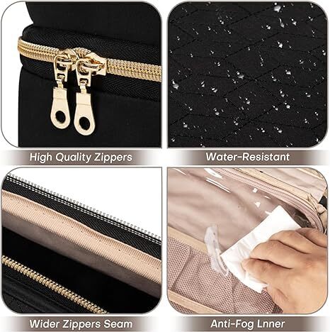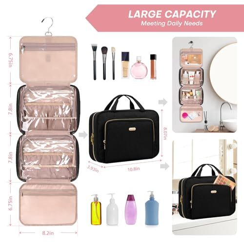 Toiletry Bag with Hanging Hook, Portable Makeup Cosmetic Bags, Medium, Black Product Details Product Dimensions: 12.6 x 9.4 x 4.3 inches Item Weight: 15.2 ounces Department: Women Country of Origin: China 【U-shaped Design】 Travel Makeup Toiletry Bag built-in 2 large U-shaped pockets, easily put in larger items, such as bath bottle and shampoo bottle. 【Easy to Store】 Toiletry Bag Make-up Essentials for Women after folding, the thickness is only 1.5 inches and the weight is only 18.24oz. The hanging unfolded size can reach 37.4 inches. 【A Firm Frame】 Non-woven fabrics are implanted on both sides of the outer side to ensure light support at the same time, and the soft fabric is better supported. 【Main Fabric】 Hanging Toiletry Bag Organizer Make-up is made of hydrophobic peach skin fabric, which feels soft to the touch. 【Metal Hook】Toiletries Make-up Organizer Travel Bag built-in 1.68in diameter hook and 100 ° opening angle, you can easily hang on various edges and rods. BALULHG Toiletry Bag with Hanging Hook, Portable Makeup Cosmetic Bags, Space-efficient, Collapsible Moving, making it more suitable for Travel