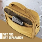 ๐๐ฉ๐๐๐ข๐จ๐ฎ๐ฌ ๐๐๐ฌ๐ข๐ ๐ง ๐๐จ๐ซ ๐๐ฅ๐ฅ ๐๐จ๐ฎ๐ซ ๐๐ฌ๐ฌ๐๐ง๐ญ๐ข๐๐ฅ๐ฌ - This travel toiletry bag (10" x 2.8" x 8.5") offers plenty of space for your grooming, hygiene, and travel needs. The mesh pocket gives you a clear view of your items, saving you time when searching for essentials. Ideal for frequent travelers, outdoor enthusiasts, and gym-goers who need a well-organized toiletry kit on the go. ๐๐ฎ๐ข๐ฅ๐ญ ๐ญ๐จ ๐๐๐ฌ๐ญ - ๐๐ซ๐๐ฆ๐ข๐ฎ๐ฆ ๐๐ฎ๐ซ๐๐๐ข๐ฅ๐ข๐ญ๐ฒ - Crafted from high-quality canvas fabric, this menโs toiletry bag is designed for the long haul. Featuring reinforced stitching and a durable alloy zipper closure, it ensures everything stays securely in place while offering superior resistance to wear and tear. Whether youโre on an outdoor adventure or navigating airport terminals, this bag will withstand the rigors of travel ๐๐ซ๐ฒ ๐๐ง๐ ๐๐๐ญ ๐๐๐ฉ๐๐ซ๐๐ญ๐ข๐จ๐ง ๐๐จ๐ซ ๐๐ฉ๐ญ๐ข๐ฆ๐๐ฅ ๐๐ซ๐ ๐๐ง๐ข๐ณ๐๐ญ๐ข๐จ๐ง - Designed with practicality in mind, this travel toiletry organizer offers two external compartments and a detachable pouch, perfect for keeping wet and dry items separate. Whether it's damp towels or spilled liquids, you can now organize your items worry-free, maintaining a clean and tidy interior. This toiletry bag with wet-dry separation is ideal for trips to the gym, outdoor adventures, or long-haul travel. ๐๐๐ซ๐ฌ๐๐ญ๐ข๐ฅ๐ & ๐๐จ๐ซ๐ญ๐๐๐ฅ๐ ๐๐๐ฌ๐ข๐ ๐ง - The hanging toiletry bag features three distinct compartments, allowing for easy separation and access to different items. The top handle provides effortless portability, making it simple to carry by hand or stow in your luggage. For added convenience, it includes a detachable travel pouch that doubles as a grab-and-go solution for smaller items ๐๐๐ซ๐ฌ๐จ๐ง๐๐ฅ๐ข๐ณ๐๐ ๐๐จ๐ฎ๐๐ก ๐ฐ๐ข๐ญ๐ก ๐๐ฎ๐ฌ๐ญ๐จ๐ฆ๐ข๐ณ๐๐๐ฅ๐ ๐๐๐ฆ๐ ๐๐๐ & ๐๐ข๐ซ๐ซ๐จ๐ซ - Make this toiletry kit truly yours! The portable detachable pouch comes with a built-in mirror and a customizable name tag. Use the mirror for quick touch-ups on the go, and flip the tag over to add your name for a personalized look. You can also remove the mirror to create your own custom label, perfect for those who value a unique touch. This customizable travel bag gives you the freedom to create a personal connection with your gear.