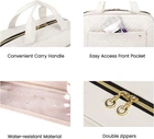 Product Description Dimension: Medium-10.8'‘L x 3.5"W x 7.9H(folded); Large-12.6'‘L x 4.5"W x 9H(folded); 4 separate compartments with zip and back open pocket for great organization. Suitable for your family trip to pack all men, women , and kids toiletries Special Design: Inner main pockets with elastic straps hold bottles upright; double zipper compartment for easy access to the items even not fully open the bag; Transparent sides for providing clear overview of contents Easy to Use: Stow-away 360-degree swivel non-slip metal hook for versatile hanging options; Two-way zipper closure for quick access; Carry handle doubles as its hanging strap Water-resistant for Wash Basin: Water: resistant Polyester peach skin with supple touch; Well-padded design to keep full bag's shape and provide great protection. It can hold many items with sturdy stitching and heavy-duty material Easy to Carry: Lightweight and easy to carry, great for overnight staying, a long journey, gym shower, and outdoor activities Door Knob Narrow Space