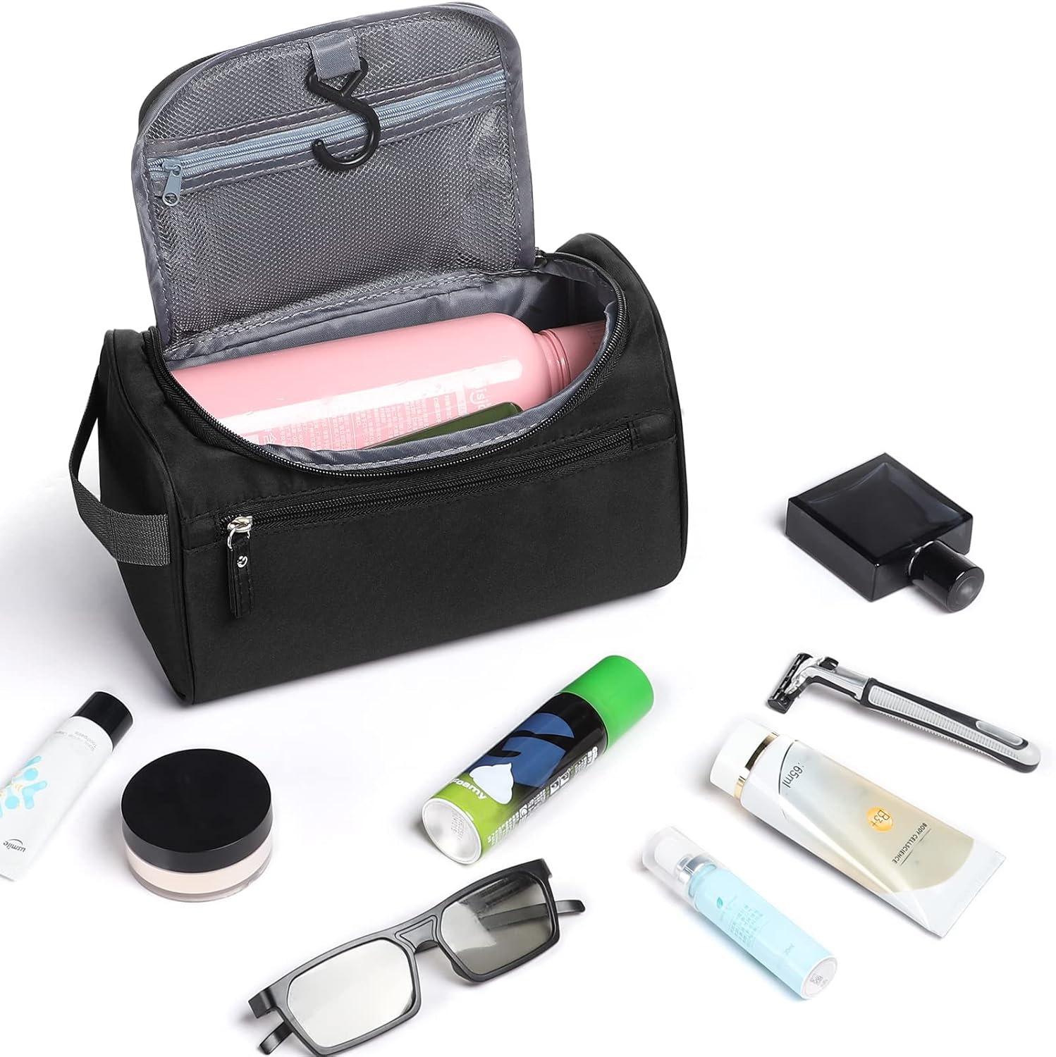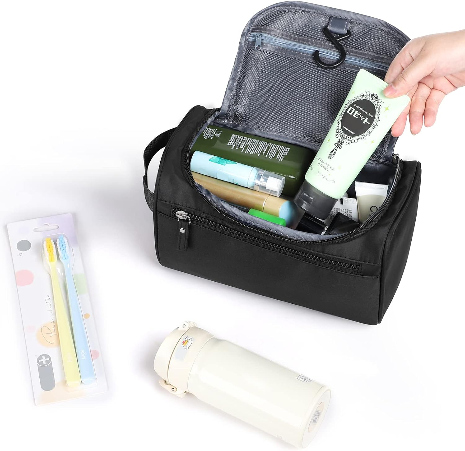 Practical Size: This toiletry bag has a practical height of 15 cm, which could easily fit electric toothbrush, shaving kit, shampoo, conditioner or other travel size toiletries. It measures 25 × 14 × 15cm/9.84 x 5.51 x 5.91inch Super Quality: The cosmetic bag is made of high quality nylon fabric materials, lightweight, waterproof, strong wear resistance and high elasticity. Weighing only 150g. Pack it flat design makes it not to take up too much room in your suitcase Hangable Wash Bag: The travel wash bag have a solid plastic hook, allowing you to simply hang your travel cosmetic bag hanging shower or towel rack, keep it away from wet floors or surfaces. The external zipper mezzanine can store your phone,card for your convenient use Made for Travel: Between the outside and the inner of the bag is filling with foam,shock resistant and provide a better protect for make up object. In the outside of the washbags it was a durable handle,so you can easily carry the make up organizer to anywhere you want Widely Applications: This toiletry make up bag also has a water-resistant and anti-bacterial inner lining, which will protect your personal items from the penetration of moisture or bacterial. Compact, sturdy, portable, which makes it a great choice for business trips, travel, gym, camping, home use and more Product Description Etercycle toiletry bag just the one you are searching! Make traveling a little less chaotic with our water-resistant toiletry bag. Our travel wash bag has a one huge main compartment with interior mesh zipper pocket for large item organizer and one outside front zipper pocket for small items storage. This travel toiletry bag is made of high quality nylon fabric, you can put it near the swiming pool or use it in the bathroom as its water resistant feature. In addition to the waterproof outer layer, the toiletry make up bag also has a water-resistant and anti-bacterial inner lining, which will protect your personal items from the penetration of moisture or bacterial, but also can avoid the leak pollution, bring you a more clean and comfortable personal care. The bag is very compact and will save your luggage space and it are easily stored inside any luggage and keeps the items in it protected and organized. Meet many occasion, you can use it for your business, travel, home, hotel, gym etc, and with the simple style, it is ok for men and women use. Durable Double Zipper Premium double zippers ,make it is easy to zip up.And with fine seam ensure a really long time use, no need to worry any ripping or break during trips. Hanging Hook There is a hanging hook when open it, which allows for securely hanging the toiletry kit from a shower or towel rack, making it easy to view and access stored contents. Convenient Grab Handle Top handle for quick grab is very easy and convenient to carry, you can take it anywhere with the portable handle. Make it convenient to carry wiht you during the travel. Mesh Pocket Fine mesh pockets for small items storage, making it easy to view and access stored contents. it is easy to get what you want without digging out. Specification Material: Polyester Washable: Easily to wash in the water. Size: 9.84 x 5.51 x 5.91 inches(25 x 14 x 15 cm) Storage Compartments: Large main compartment with 1 mesh pockets, 1x outside front zipper pocket. Package Include 1 x Toiletry Bag