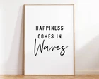 Happiness Comes In Waves Wall Art Printable Beach House Sign Motivational Quotes Print Poster Coastal Wall Decor Material: Premium luster photo paper Print type: Inkjet printing One side printed + The finish provides the highest possible resolution and color saturation + Lasts up to 200 years in color and 400 years in black-and-white + Printed on high-quality resin-coated photo base paper medium + Posters can be hung with double-sided tape, tacks, or framed + Hand washing with a gentle cry cloth is recommended for extended durability I will hand select the best choice of paper for your chosen design to ensure top quality results for a beautiful, bright and luxurious print. All prints are sealed in cellophane slips for protection during transportation, and are shipped in a protective cardboard envelope.