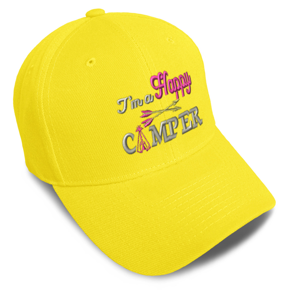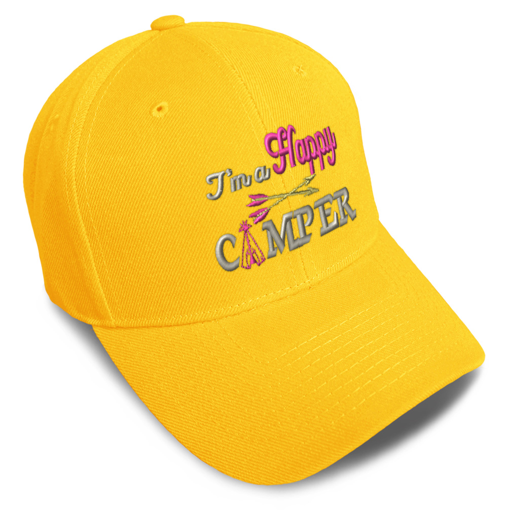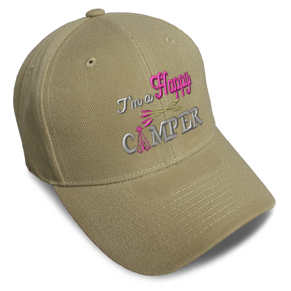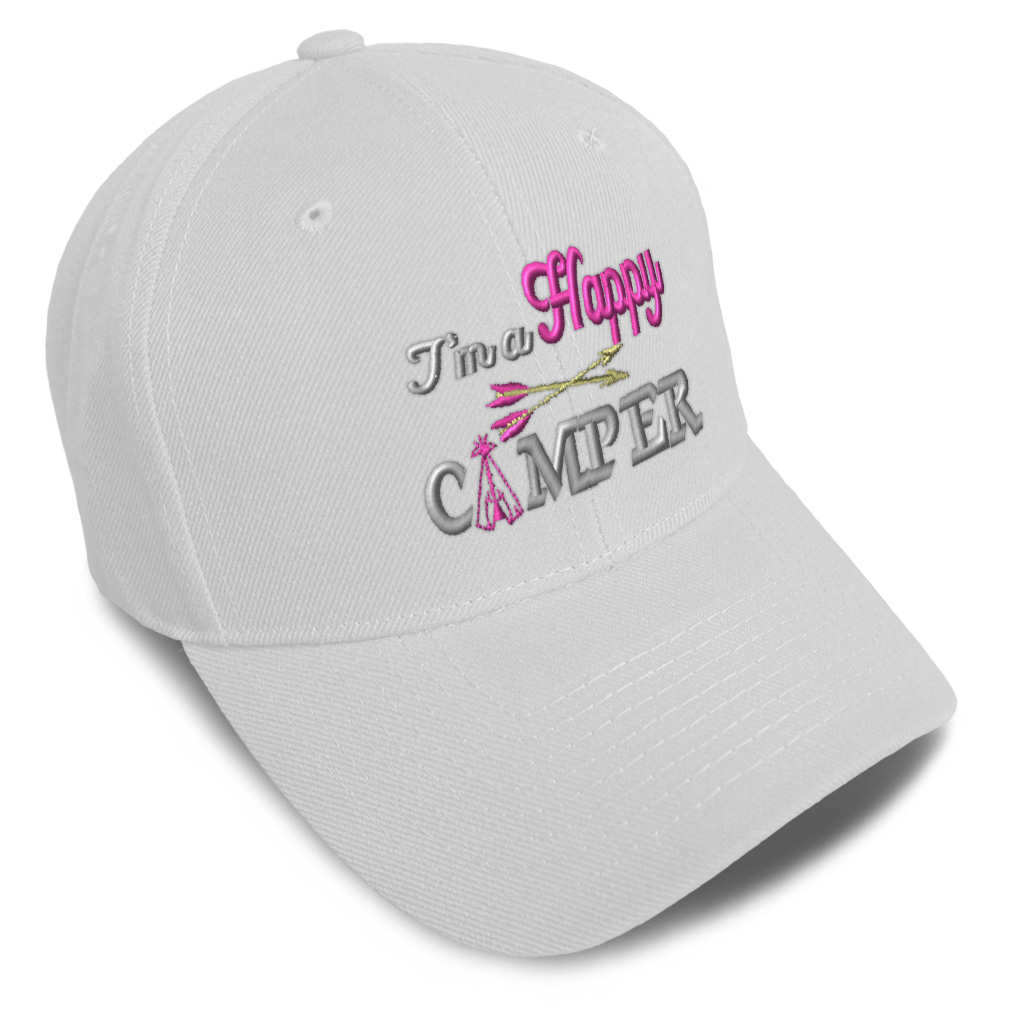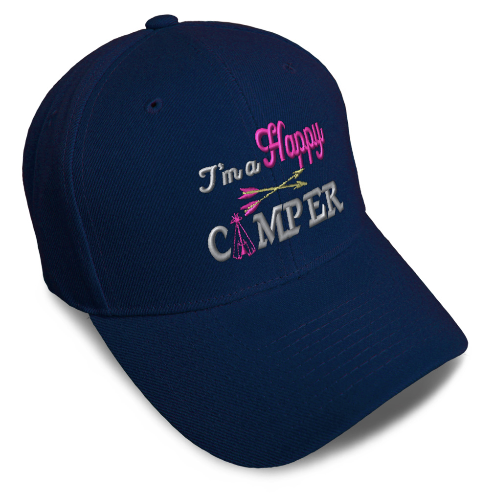 Unisex Structured Baseball Cap Classic never goes out of style! Our baseball caps will come everywhere with you and will take your outfit to the next level. Our caps are available in 18 colors, so we are sure you'll find the perfect one. GREAT GIFTS IDEA: Unforgettable and unique, our golf hats men and women are the perfect gift for birthdays, anniversaries, Christmas, Father’s Day, Mother’s Day or any other celebrations. Perfect for someone who is looking for Happy hat, Camper baseball cap, enjoy mens hat, RV hats for men, fun dad hat, Motor Home hats for women, Travel accessories, Camping gifts for men, Caravan gifts for dad, Lifestyle gifts for husband Happy apparel, Camper shirt. These mens hat and baseball hats for women are suitable for exercise such as running, casual outings to go to the beach, to work, to the club, to the mall or an everyday wear. You can make this mom hat or dad hat one of a kind with our custom option with thousands of designs available to you. Simply add your personalized text and choose among various fonts and colors! Our embroidery will continue to look great after many years, it is carefully made in our lab in Tampa, Florida. The design's text reads: i'm a happy camper. BEST CLASSIC BASEBALL CAP! ** , , , , PAYMENT TERMS