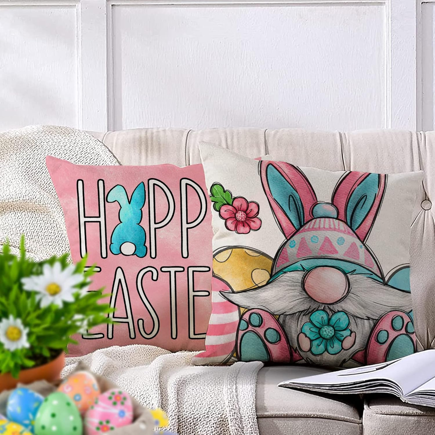 Store New Arrivals Add to Favorite View Feedback Contact Fast deliveries to the customer's home Quality customer service John Make the customers happy! Happy Easter Bunny Gnome Decorative Throw Pillow Covers 18 X 18 Set of 4, Hello Peeps Eggs Rabbit Cushion Case Decor, Pink Spring Home Decoration for Sofa Couch Description Exquisite Design: The Easter gnome pillowcases are designed with Easter eggs, bunny gnome, flowers printed in the middle of the pillowcase. The simple style is very suitable for expressing your feelings. The pillowcase is not only a gift full of love, but also a very warm home decoration Square Shape: Our Easter pillow cover does not include the pillow inserts, only four pillowcases of 18×18 inches. Due to manual cutting and sewing, please allow a deviation of 0.5-1 cm. The invisible zipper design is easy to refill. The pattern is a single-sided design Cotton Linen Material: Our bunny gnome burlap throw pillow covers are made of cotton and linen fabric, reflecting the rustic and farmhouse style, durable and comfortable, no odor, no fading, no harm to the skin, don't worry about harm to children and pets, can be machine washed or hand washed Suitable For Inside And Outside: Our Easter pillowcases are not only suitable for indoor places such as living room, children's room, bedroom, etc., but also apply to outdoor places such as camping grounds, beaches, and gardens. They are the best decoration choice for sofa couch bench and lounger Warm Gifts:Our hello peeps pillowcases are designed in different styles and suitable for men and women of all ages. Of course, not only at festivals, but our pillowcases can also be used all year round. You can buy this Easter pillowcase to your loved ones whenever you want to express your love. They are excellent gift ideas for friends and family Product description The video showcases the product in use. The video guides you through product setup. The video compares multiple products. The video shows the product being unpacked. Easter Pillow Covers Merchant Video Decorating your home in a easy way! Pillow covers only, pillow insert or filler are not included Easter Pillow Covers Easter Pillow Covers Easter Pillow Covers Easter Pillow Covers Easter Pillow Covers Ussap Decor Pillow Covers Add to Cart Add to Cart Add to Cart Add to Cart Add to Cart Add to Cart Add to Cart Customer Reviews 4.6 out of 5 stars 156 4.5 out of 5 stars 58 4.5 out of 5 stars 58 5.0 out of 5 stars 35 4.7 out of 5 stars 170 4.6 out of 5 stars 104 4.6 out of 5 stars 104 Price $17.99 $ 17 . 99 $12.99 $ 12 . 99 $12.99 $ 12 . 99 $16.99 $ 16 . 99 $13.99 $ 13 . 99 $6.49 $ 6 . 49 $20.99 $ 20 . 99 Theme Spring Easter Easter Spring Spring Valentines Valentines Material Cotton Linen Cotton Linen Cotton Linen Cotton Linen Cotton Linen Cotton Linen Cotton Linen Dimension 18x18 inches 18x18 inches 18x18 inches 18x18 inches 18x18 inches 18x18 inches 18x18 inches Quantity Set of 4 Set of 4 Set of 4 Set of 4 Set of 4 Set of 4 Set of 4 Machine Washable ✔ ✔ ✔ ✔ ✔ ✔ ✔ Item model number -318 Style Simple Weave Type Plain Weave Number of Items 4 Pattern Cartoon Theme Flowers Number of Pieces 4 Unit Count 4.0 Count Room Type Bedroom, Living Room Batteries required No Product Dimensions 18"L x 18"W Material cotton linen Pillow Type Throw Pillow Closure Type Zipper Item Weight 10.8 ounces Is Euro Pillow Size No Special Feature Durable Color Easter Gnome Shape Square Recommended Uses For Product Home Product Care Instructions Machine Wash Size 18" x 18" (Pack of 4) ABOUT US We offer the best prices around on high quality products. Our E-store includes media such as books, movies, music and games while offering electronics, toys, sporting apparel, clothing, tools, general home, garden items and more. SHIPPING We are always working hard to ensure your package arrives as soon as possible. Please understand that some factors like weather, high postal traffic, and the performance of shipping companies are outside of our control. We offer free shipping to the lower 48 states and ship within 2 business days of payment, usually sooner. We do not accept P.O. Boxes. Please provide a physical address. For shipping outside of the continental USA, we only use eBay's Global Shipping Program. The item is shipped to KY and then sent to the rest of the world. International customers are responsible for all duties and taxes. Continue to 'check out' to calculate costs for shipping the item to your country. Messages regarding eBay's Global Shipping Program MUST be directed at eBay EXCLUSIVELY. RETURNS We offer a 30-Day Return Policy on items in which you are not completely satisfied with. You have the option of a full-refund or an exchange of the item. No returns are available on items shipped outside of the USA PAYMENT We accept PayPal. CONTACT US This page content is yet to come Please ad us to your favorite seller and visit again later Thank You CUSTOMER SATISFACTION We try our very best to make sure every customer is completely satisfied. If there's a problem, message us! We're happy to help. WE ACCEPT