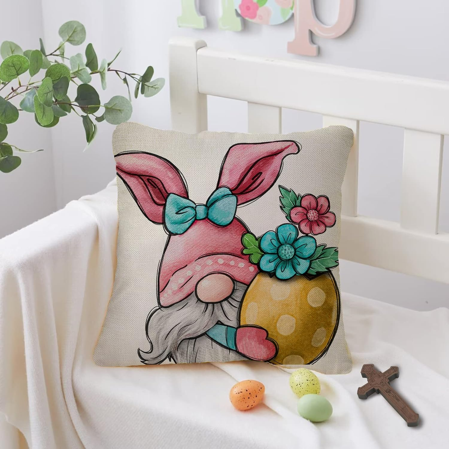Easter Bunny Easter Eggs Hydrangea Pink Throw Pillow Covers, 18 X 18 Inch Eucaly