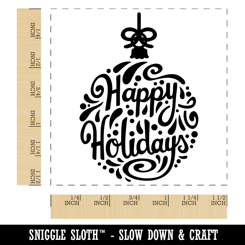 Happy Holidays Cursive on Ornament Christmas Self-Inking Rubber Stamp Stamper