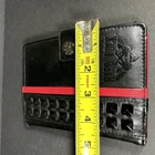 Passport holder has been used and does have wear. Some indents on back. Wear on edges - see photos. Snap closure. From a smoke free home.