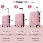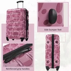 The 3 p ieces set includes 20 inches, 24 inches and 28 inches. One set just satisfies all your different travelling needs.The printed suitcase is very summery and will turn you into a fashion expert in seconds. Material: These luggage sets with wheels are made from high tenacity PC material, harder and more resistant to pressure, effectively reducing damage caused by collisions during travel. Protection: Each suitcase is covered with a protective film, which can be removed before use to avoid bumps and scratches during transportation. Safe:Side mounted TSA lock which allows only TSA agents to inspect your suitcase sets without damaging the lock. Zippers are not easy to be pierced by sharp tools, that protects your stuffs in luggage and privacy more better. Carry & Move:Silicone handles make it easier to lift your suitcases when going up and down stairs. Sturdy 3-step telescoping handle slso allow you to maneuver in tight spaces and provide effortless movement. We have perfected our hard case luggage collections, with high quality material molded body coveted. Instructions for Reset the combination lock 1.The lock is Pre set to 0-0-0; 2. Push the button on the broadside, while in this position, set each number to your preference; 3. Release the button and your combination is now set; 4.Take care when setting the numbers to not release the button while setting it. Note: None of the three dimensions of this suitcase are expandable.