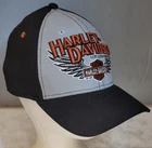 Harley-Davidson Motorcycles New Era 39THIRTY Fitted Hat - Black/Grey - M/L Condition: Good preowned condition. Details: Brand: New Era Style: 39THIRTY Flex Fit Fitted Hat Size: Medium/Large (M/L) Color: Black with grey and orange embroidery Features: Harley-Davidson logo embroidered in orange over the Harley-Davidson crest with wings on the front "Est. 1903" embroidered in grey on the right back side Stretch-fit design for a comfortable, flexible fit Description: This Harley-Davidson New Era 39THIRTY Fitted Hat is a must-have for motorcycle enthusiasts. Featuring bold Harley-Davidson embroidery on a classic black and grey colorway, this flex-fit hat provides a comfortable and secure fit with its stretch fabric design. Perfect for everyday wear, whether you're riding or just showing off your Harley pride. Feel free to message with any questions!