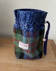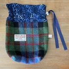 Harris Tweed Wool Drawstring Project Bag. Hand sewn in Harris Tweed with cotton lining by The Fabulous Mr. G. in Scotland. Excellent condition.
