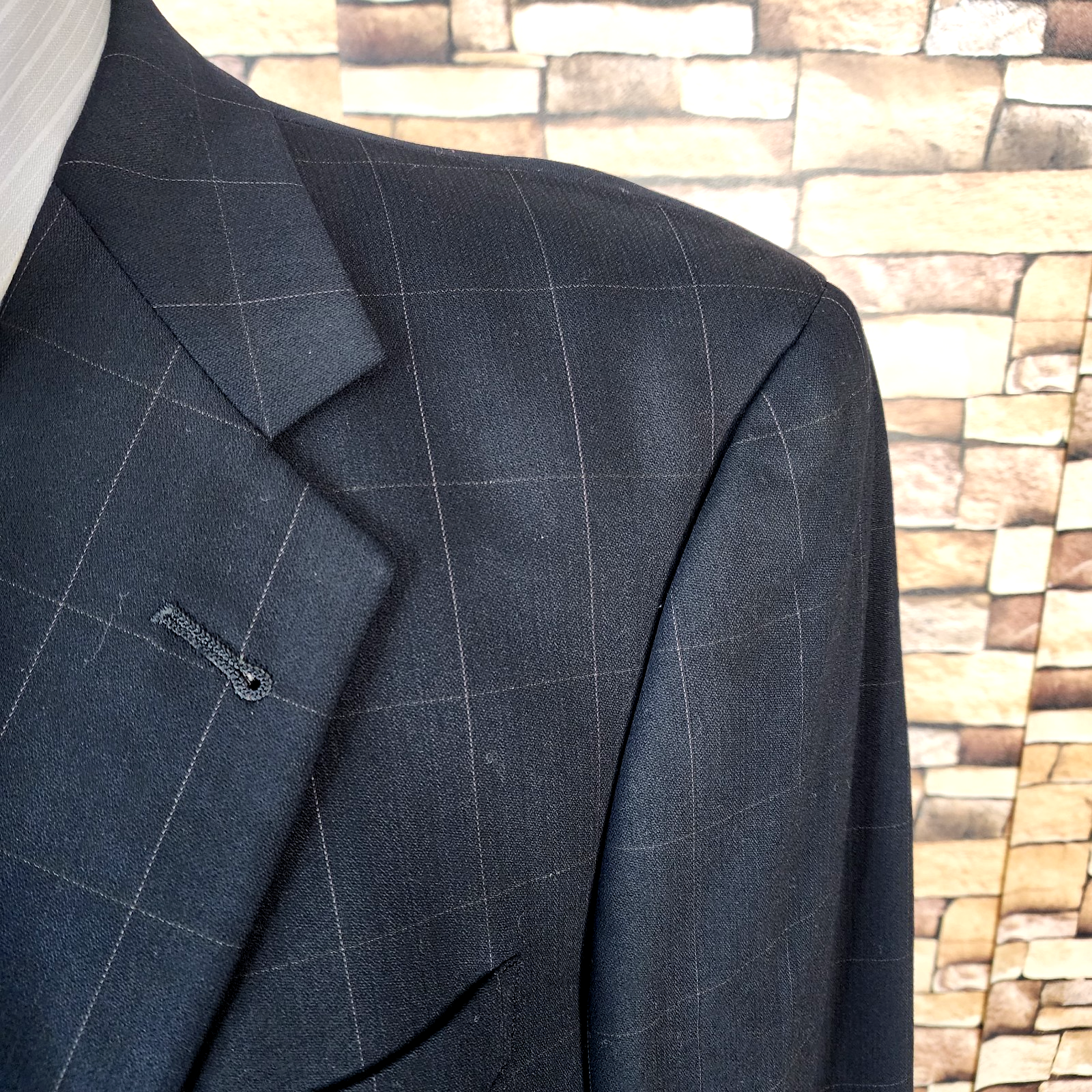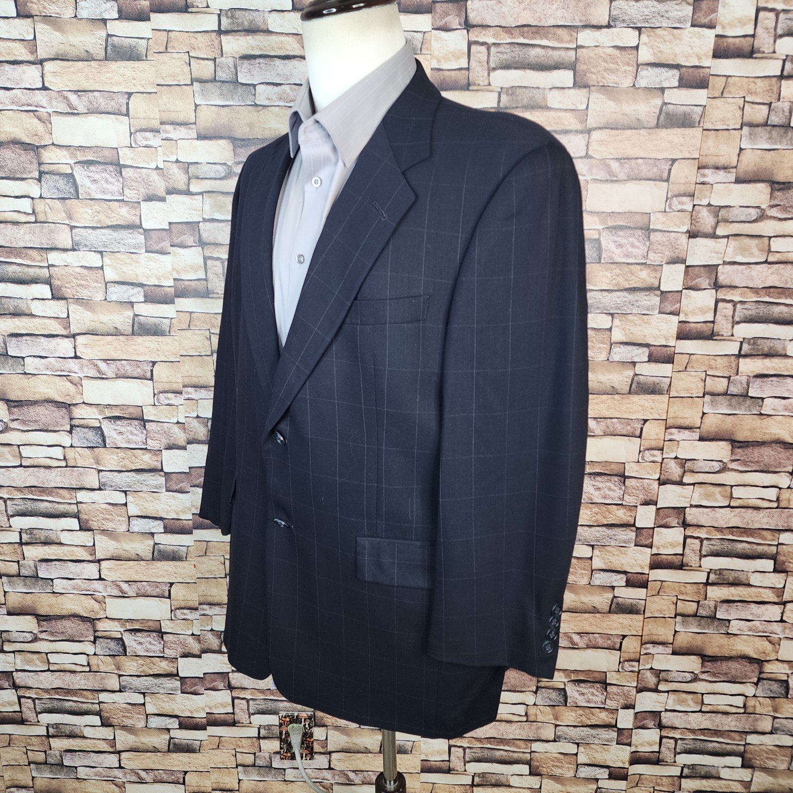 Hart Schaffner Marx Jacket Blazer Mens 42R/S Dark Navy Windowpane Wool Has Been Shortened a bit in the Sleeves and overall jacket Length . Almost Black in color Shirt Size on Label 42R Shoulder- Hem 30.00'' Shoulder- Shoulder 20.00'' Shoulder- Wrist 23.00'' Armpit- Armpit 22.50'' Top button 21.00'' Everything ships within a day. Spot cleaned according to manufacturer's recommendations. Has a chance of wrinkling in the mail. Feel free to message me with any questions. Thank you very much. 11/30/2025