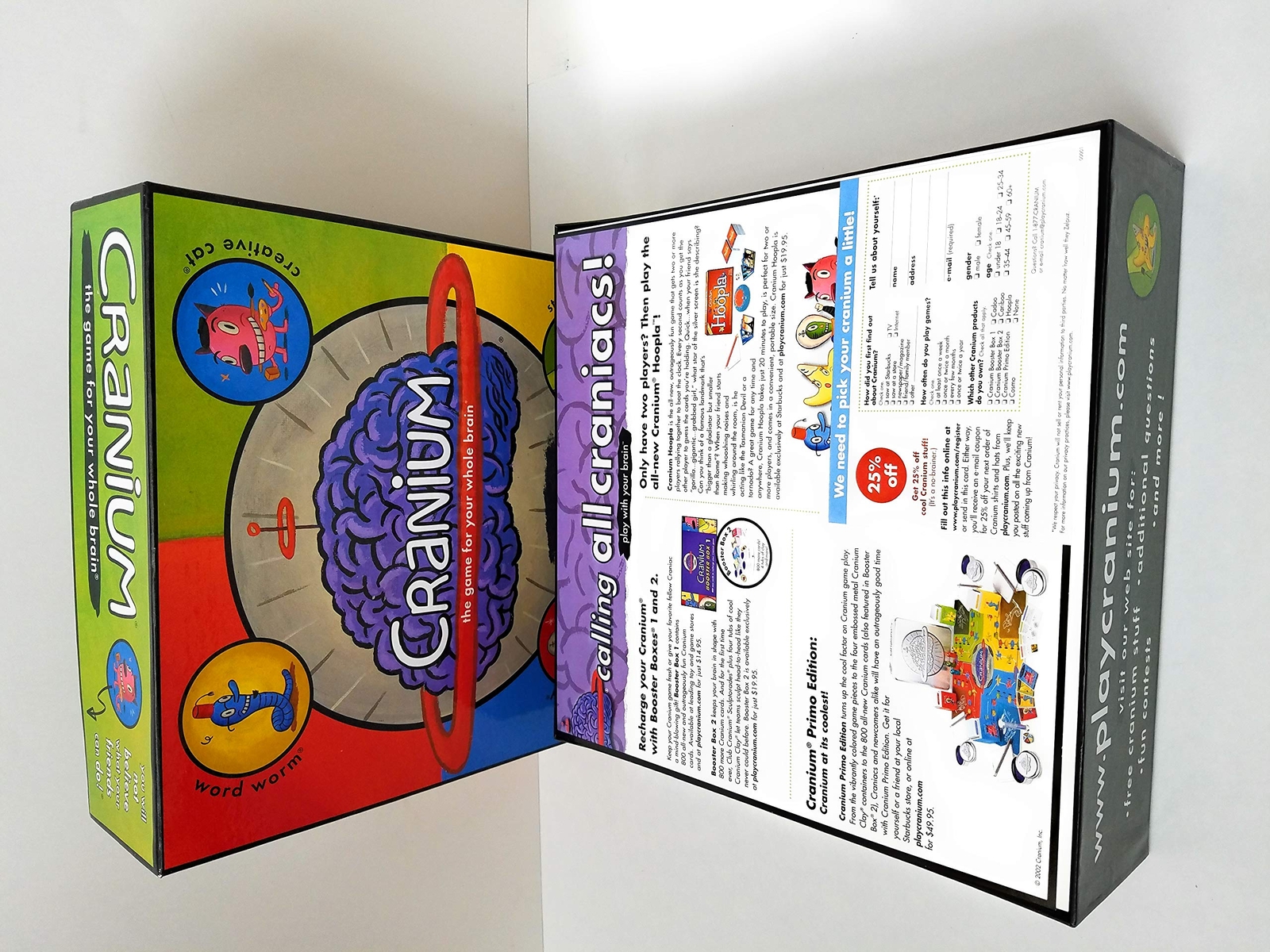 Hasbro Gaming Cranium Cranium is the version of the smash-hit, multi-activity game Cranium made for kids and parents Teams work together to race around the board by completing a mix of 14 hilarious activities, Now with all new components, including 600 all-new cards and flexible length of play Whether you are an aspiring actor, artist, data hound or wordsmith, Cranium gives you and your team a moment to shine Cranium Edition gives everybody from Grandma to Junior the chance to shine Includes performing wacky stunts, sculpting with Cranium Clay, sketching, acting, and more From the Manufacturer Cranium is the version of the smash-hit, multi-activity game Cranium made for kids and parents. Teams work together to race around the board by completing a mix of 14 hilarious activities, including performing wacky stunts, sculpting with Cranium Clay, s Shipping We offer FREE shipping on all orders! We ship within Three business days of payment, usually sooner. We use a selection of shipping services such as UPS, FedEx, USPS etc. We only ship to the lower 48 states, no APO/FPO addresses or PO Boxes allowed. Local pickups and combined shipping options are not provided at this time. Return You can return a product for up to 30 days from the date you purchased it. Any product you return must be in the same condition you received it and in the original packaging. Please keep the receipt. Payment We accept payment by any of the following methods: PayPal Please pay as soon as possible after winning an auction, as that will allow us to post your item to you sooner! Feedback Customer satisfaction is very important to us. If you have any problem with your order, please contact us and we will do our best to make you satisfied. Contact Us If you have any queries, please contact us via ebay. We usually respond within 24 hours on weekdays. Please visit our eBay store to check out other items for sale! Thank you for shopping at our store.
